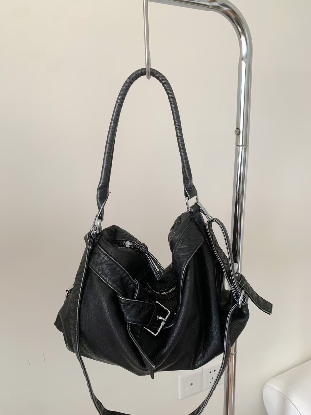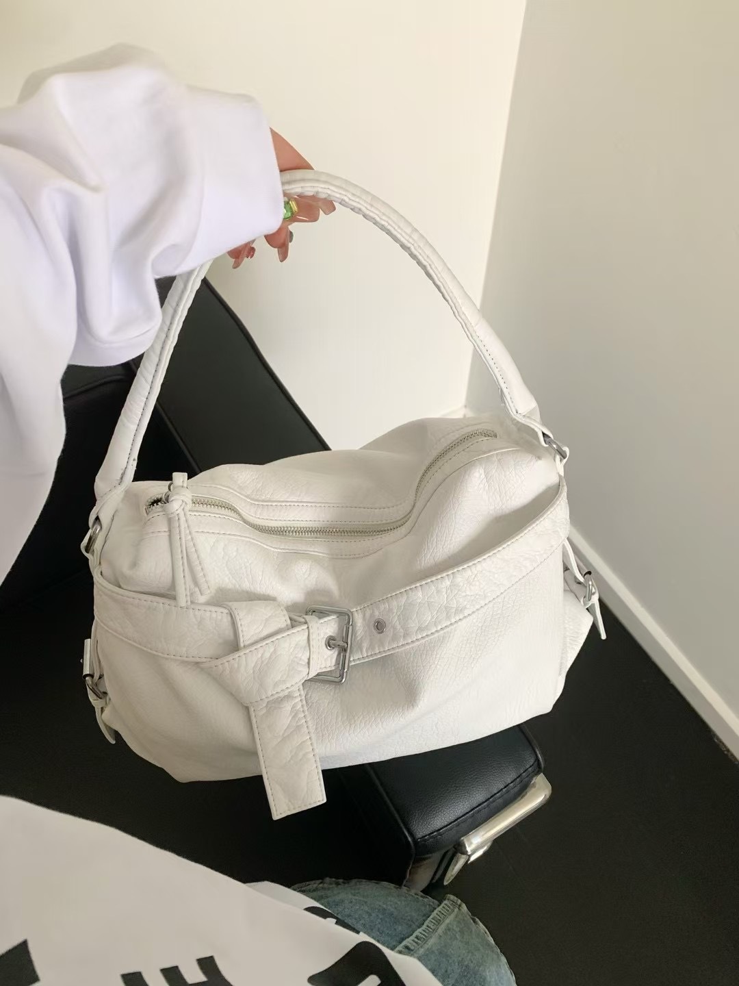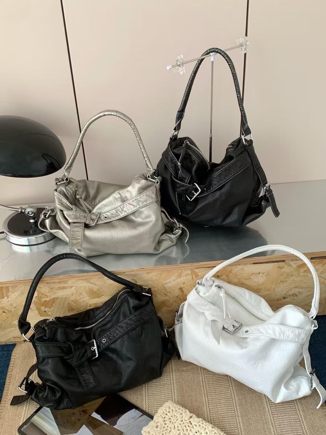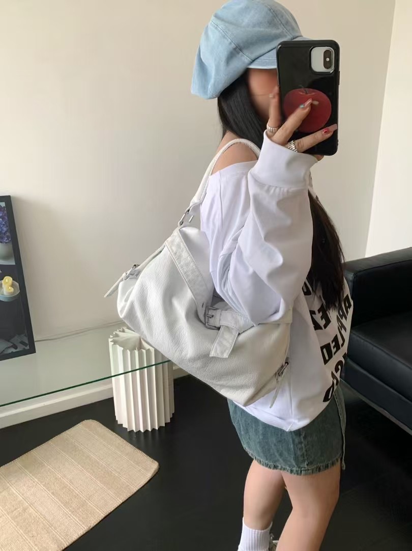 워시드 가죽 레트로 한국 인기상품 2026 봄 레트로 핫걸 바이커 스타일 대용량 숄더/크로스 토트 여성 가방스토어 가기