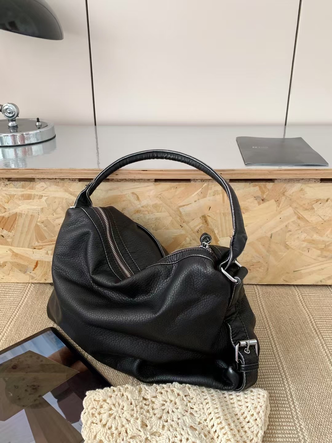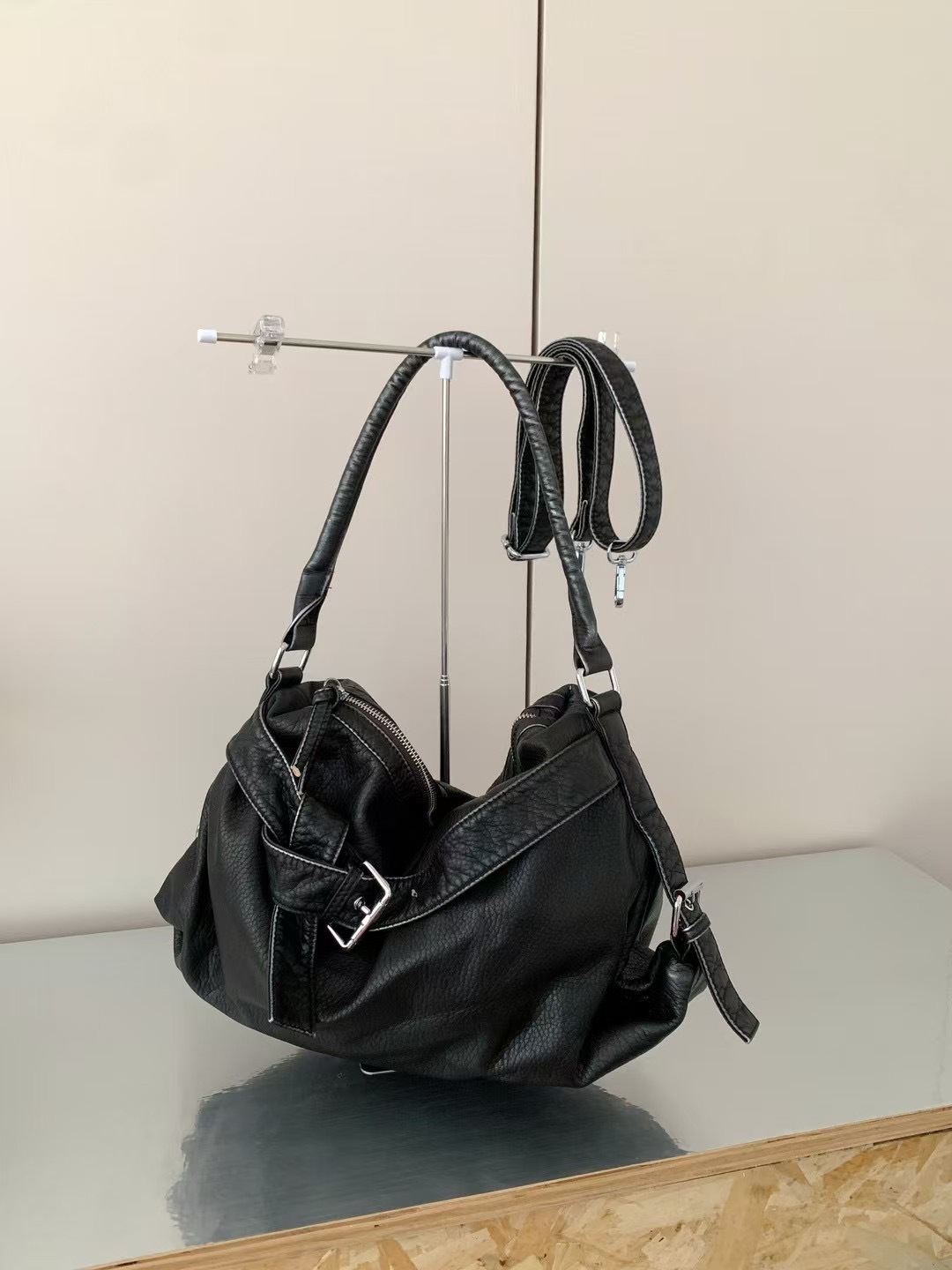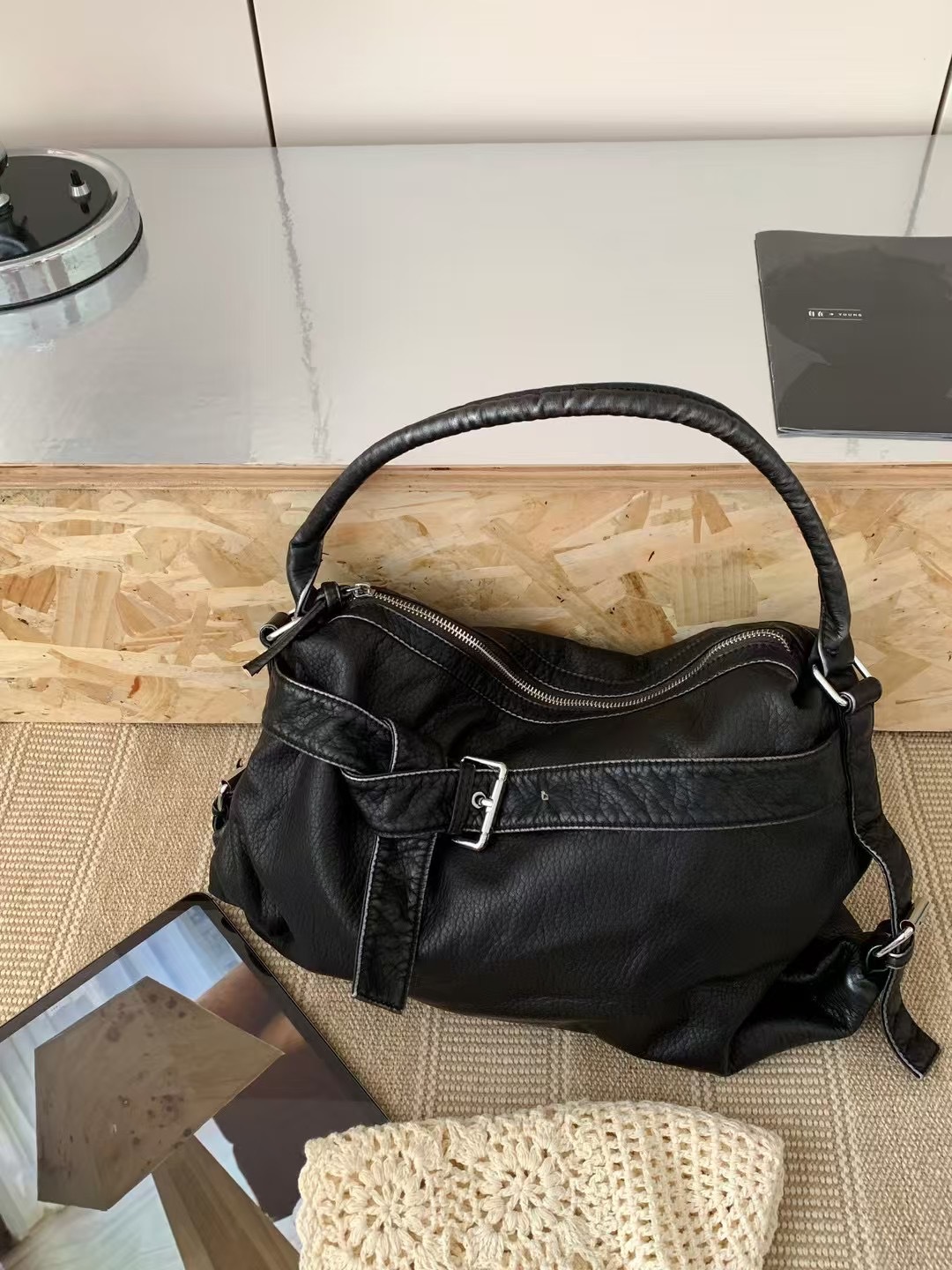 워시드 가죽 레트로 한국 인기상품 2026 봄 레트로 핫걸 바이커 스타일 대용량 숄더/크로스 토트 여성 가방스토어 가기