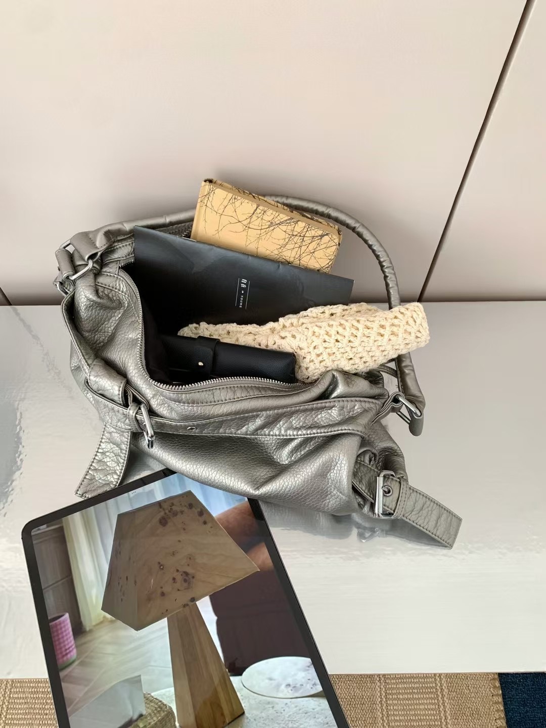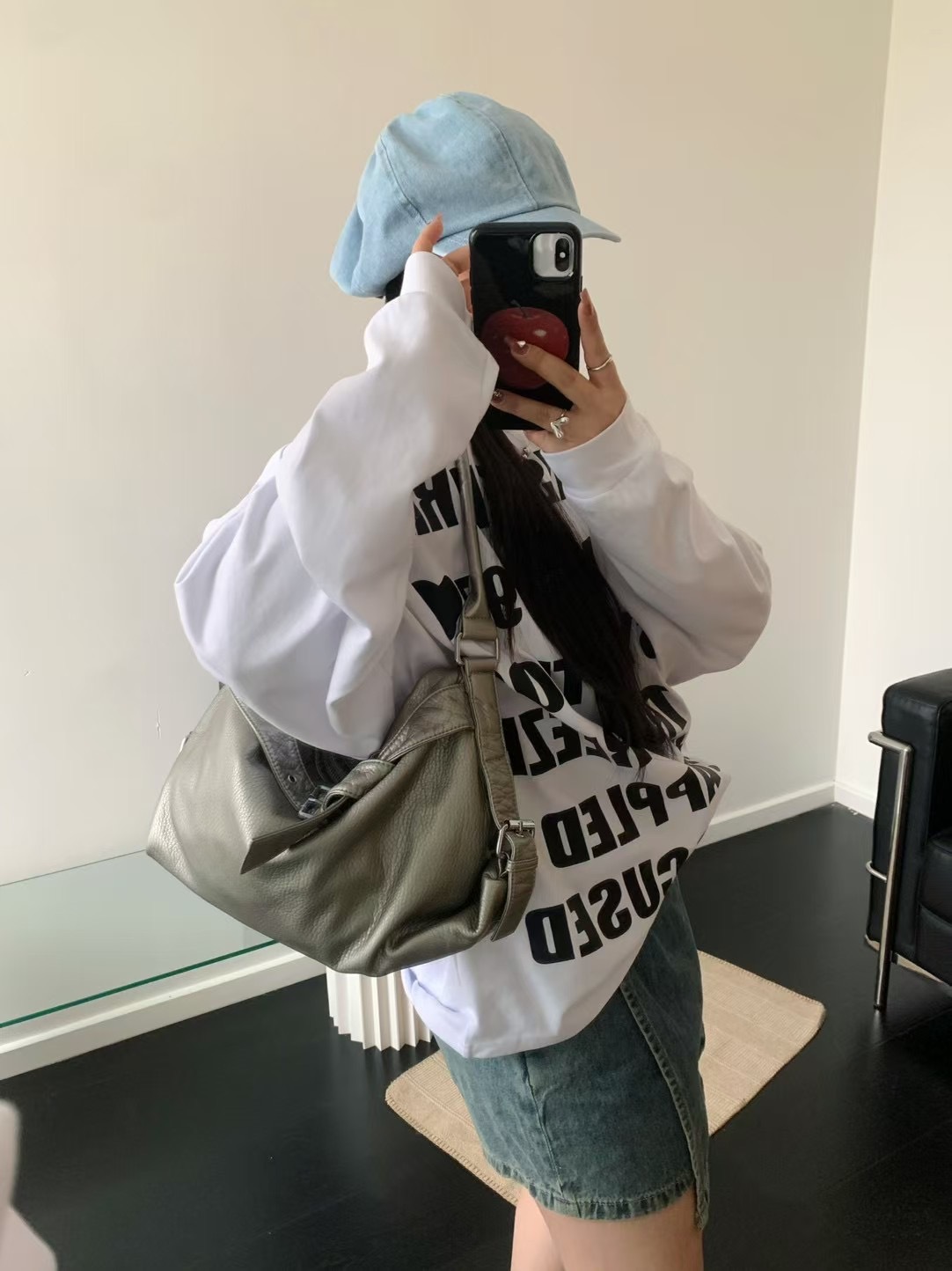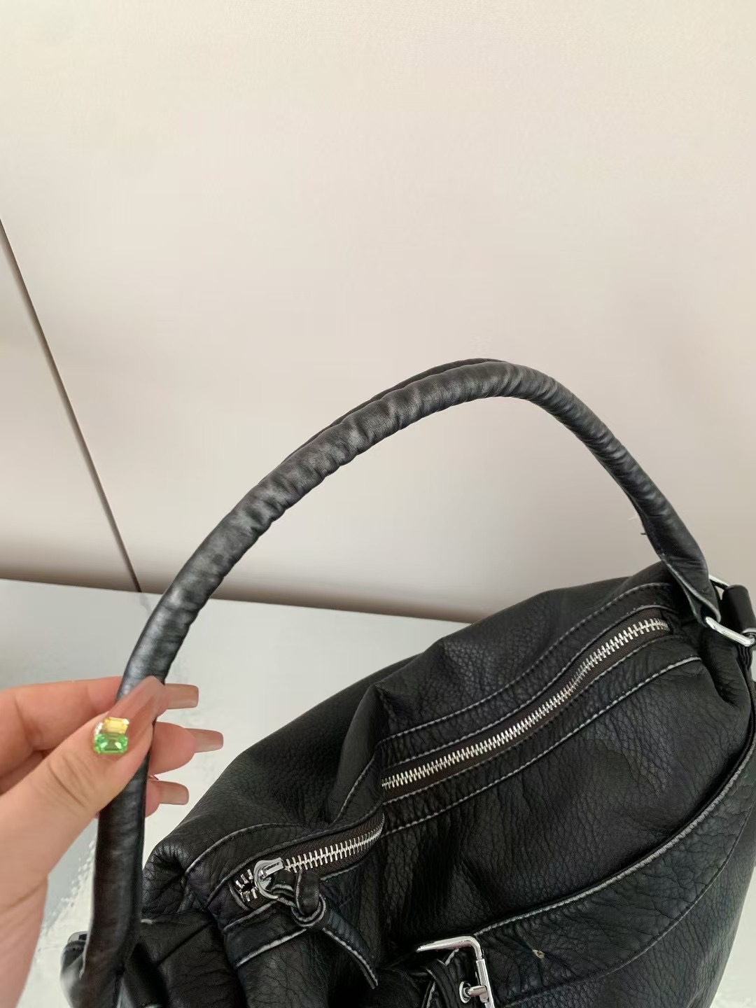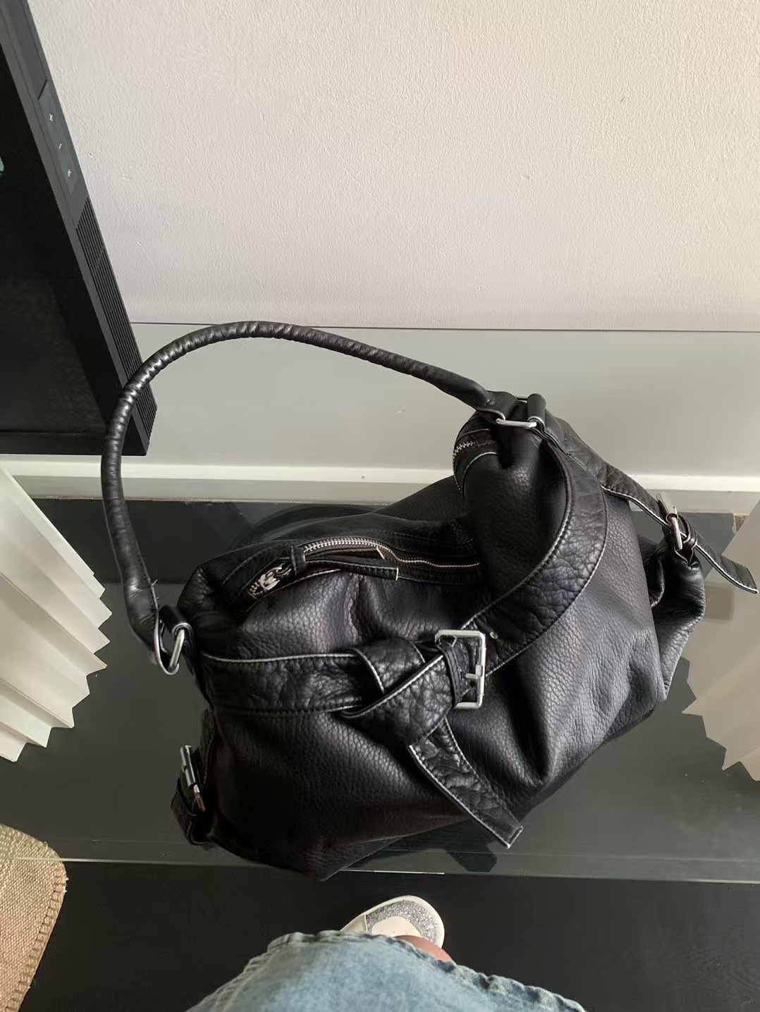 워시드 가죽 레트로 한국 인기상품 2026 봄 레트로 핫걸 바이커 스타일 대용량 숄더/크로스 토트 여성 가방스토어 가기