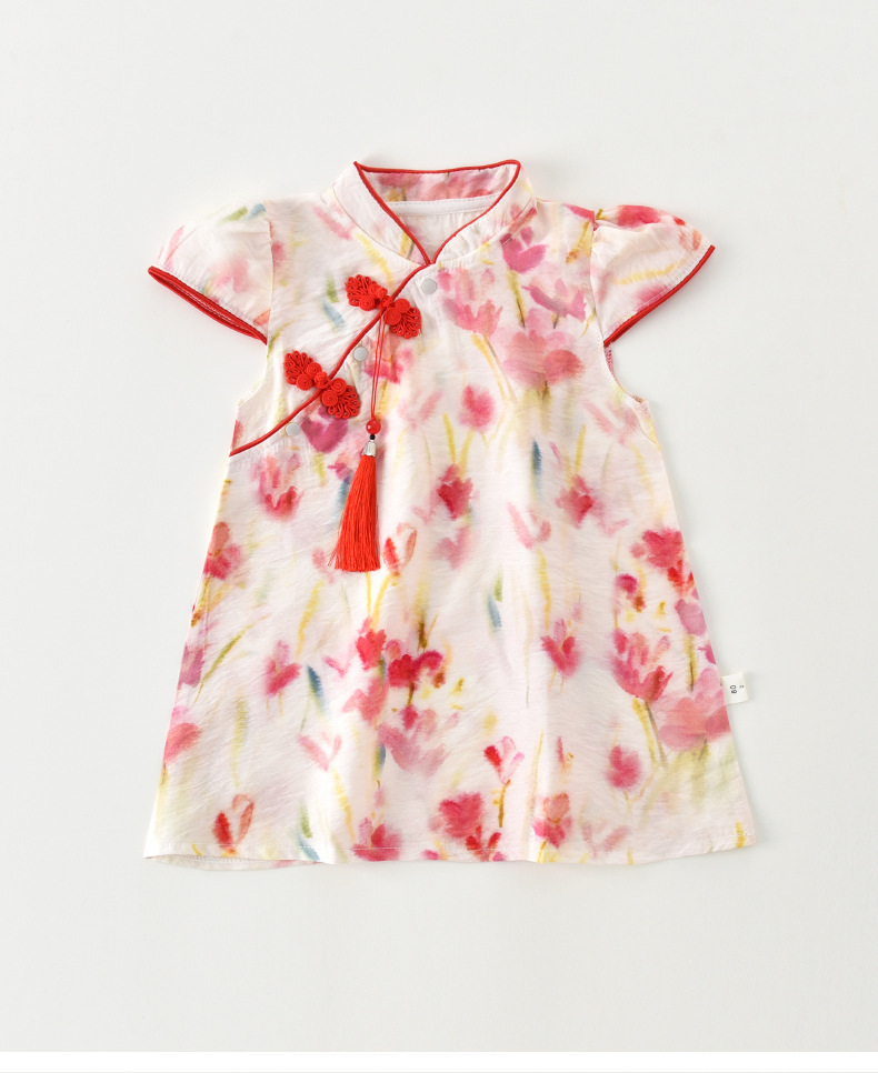 Hanfu 아기 소녀 중국 스타일 치파오 복고풍 소녀 당나라 정장 2025 봄과 여름 새로운 아기 새로운 중국 스타일 드레스
