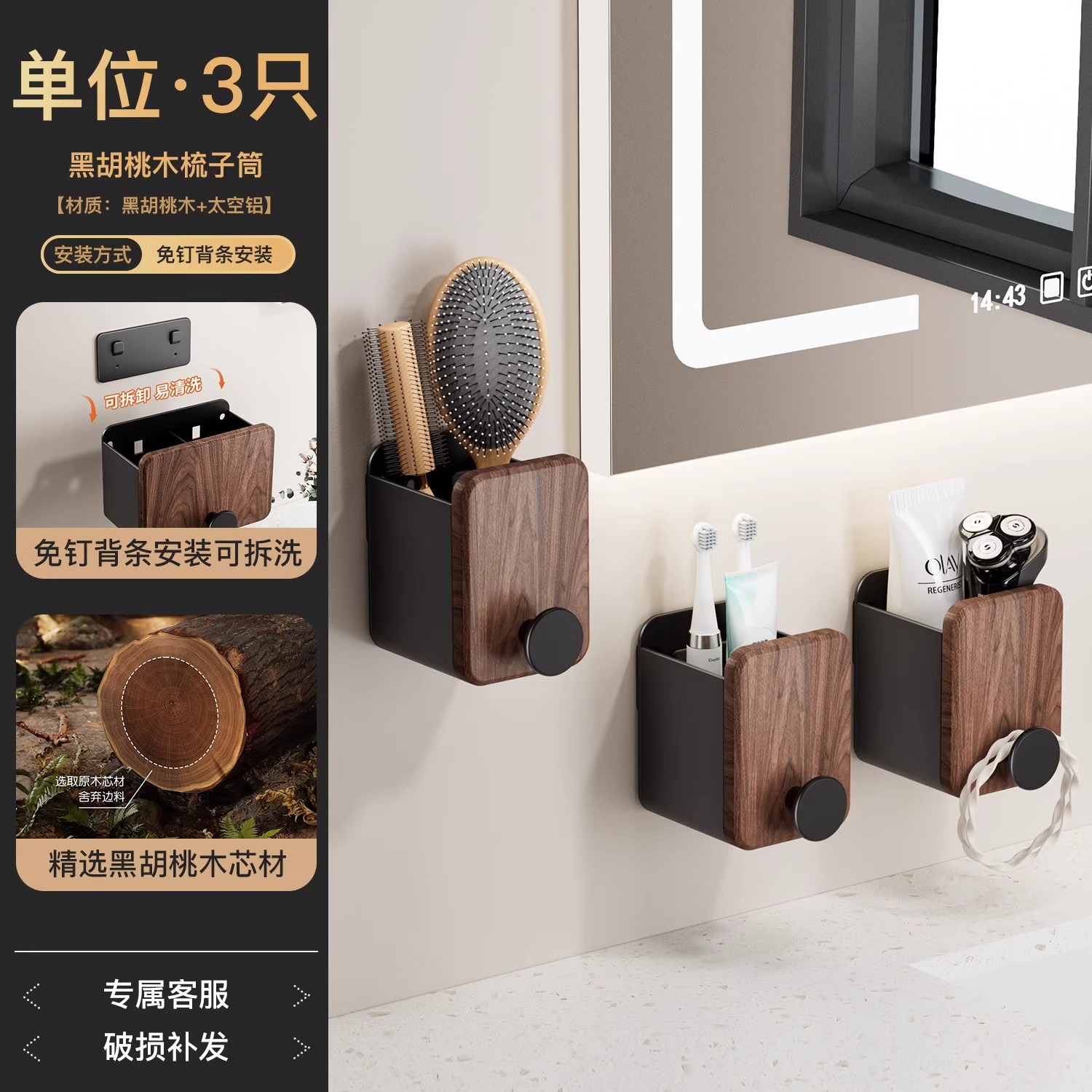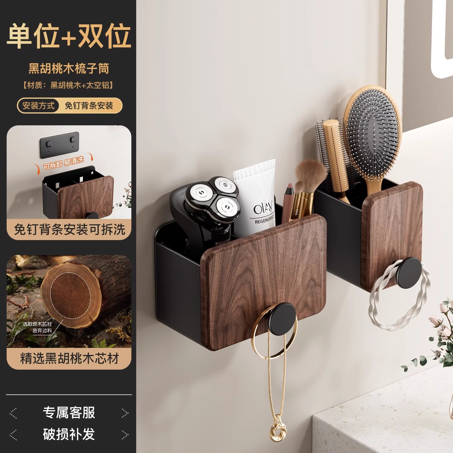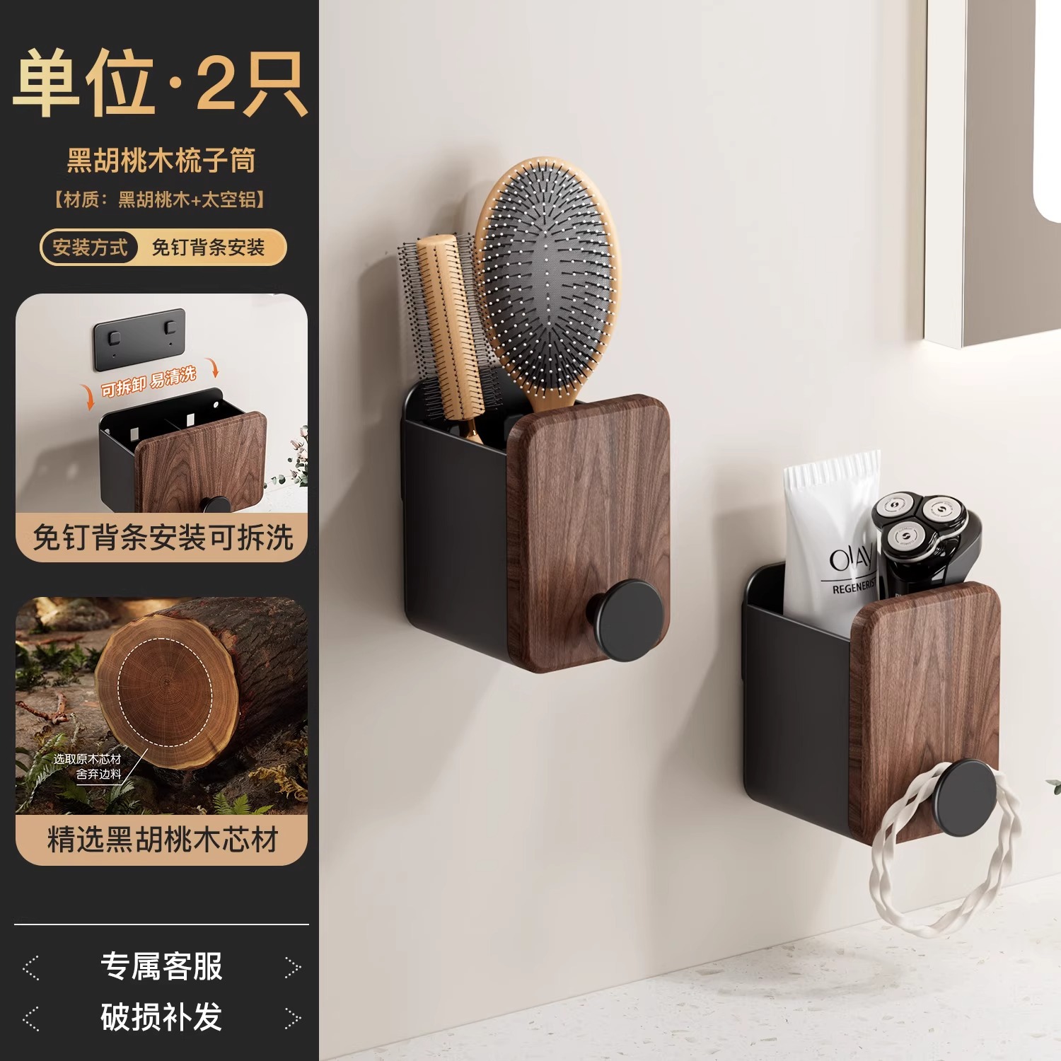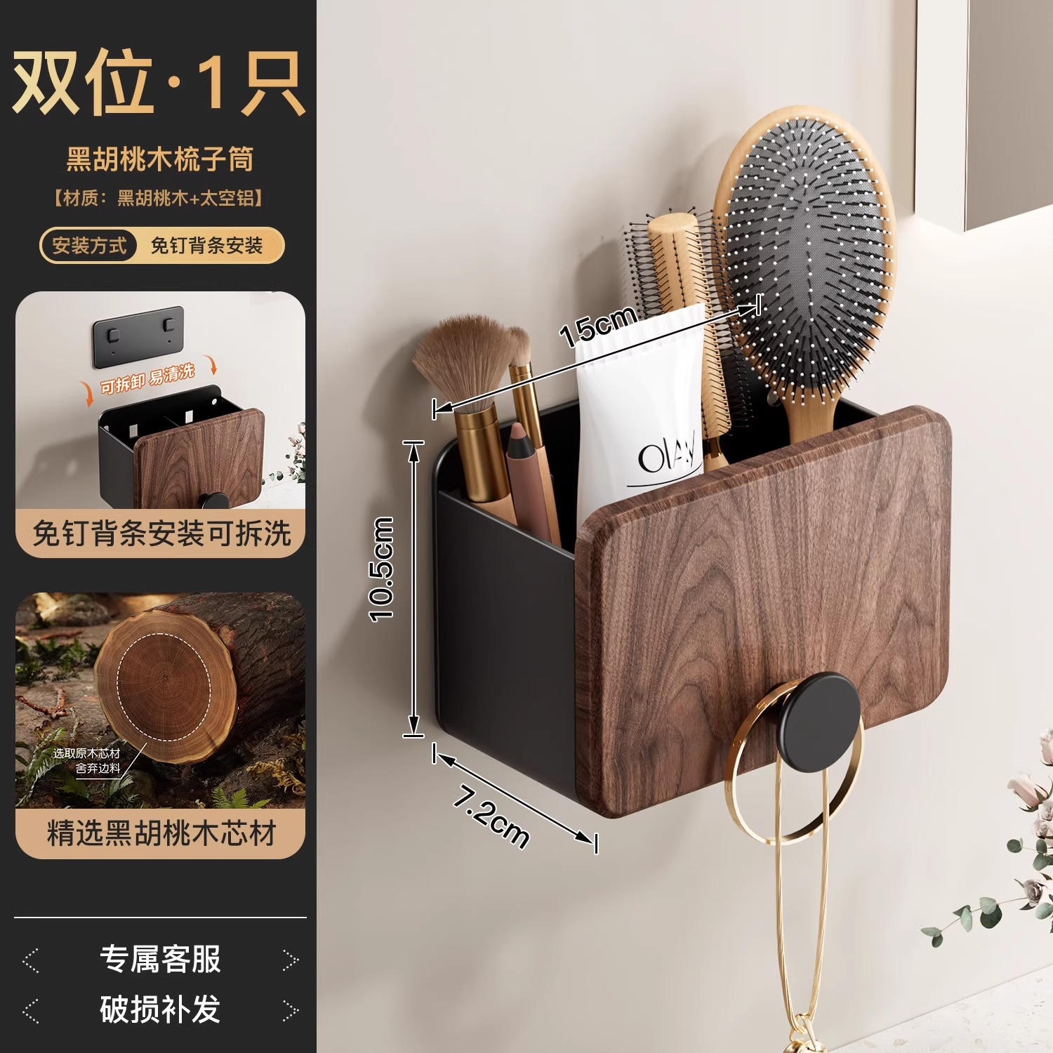 호두 욕실 화장실 빗 랙 펀치 프리 워시스탠드 치약 면도기 화장품 브러시 보관 실린더