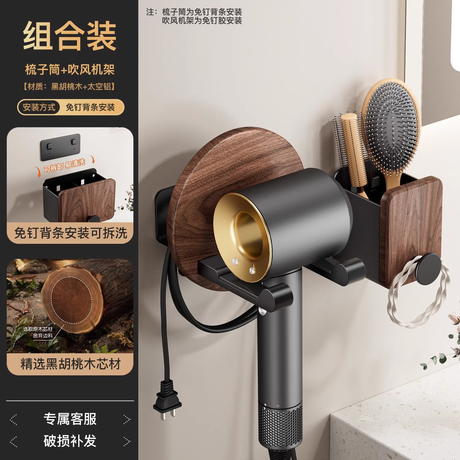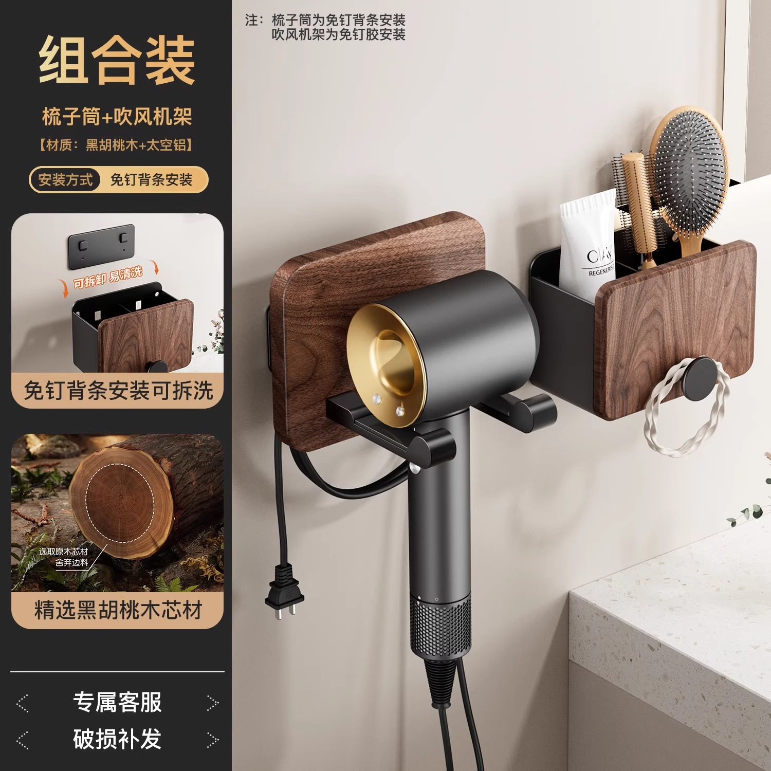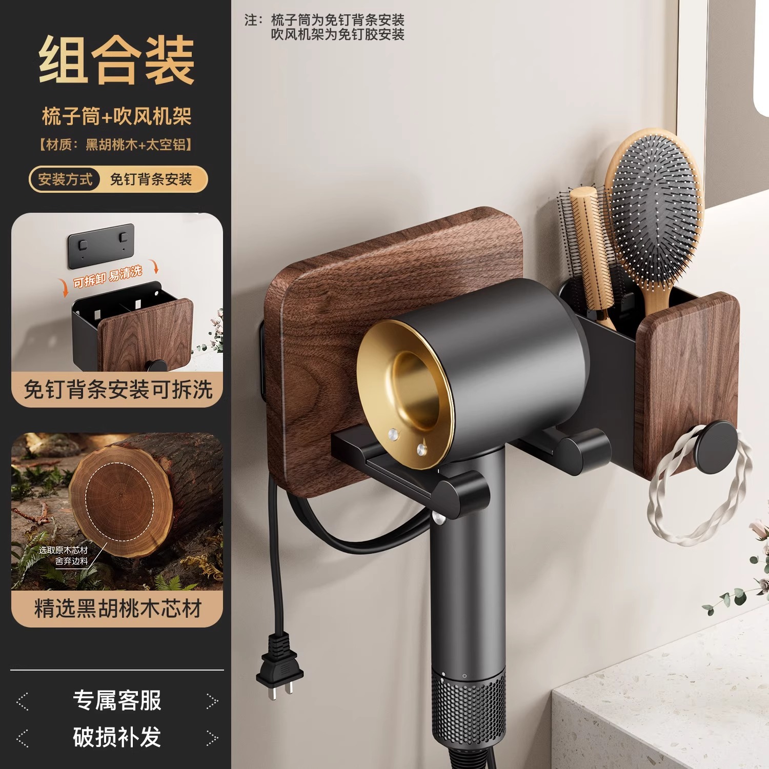 호두 욕실 화장실 빗 랙 펀치 프리 워시스탠드 치약 면도기 화장품 브러시 보관 실린더스토어 가기