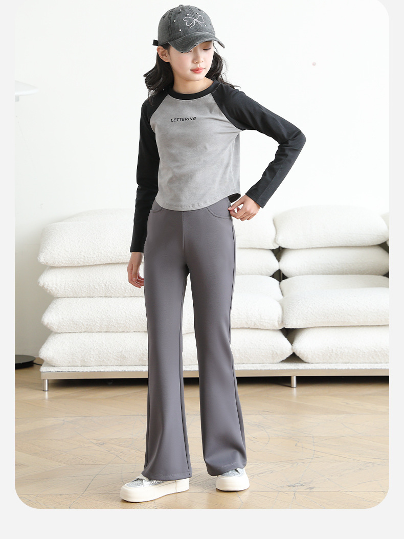 여아 플레어 요가 팬츠, 봄, 가을 스포츠 타이트 마이크로 플레어 팬츠, 큰 아동용 아우터 레깅스, 아동용 바지