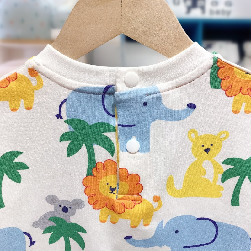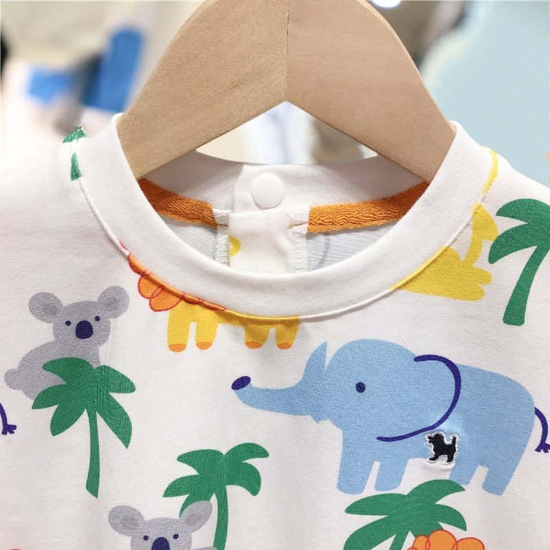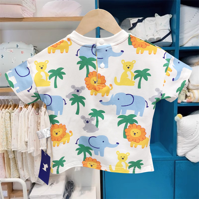 여름 새 소년 소녀 아기 만화 반팔 티셔츠 라운드 넥 탑 한국 아동복 MS550904 인쇄