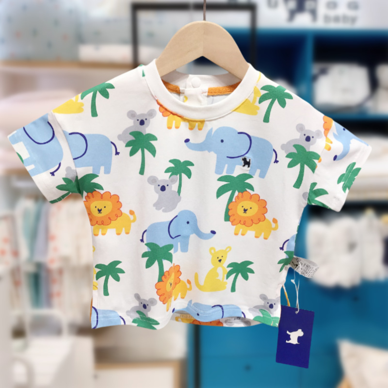 여름 새 소년 소녀 아기 만화 반팔 티셔츠 라운드 넥 탑 한국 아동복 MS550904 인쇄스토어 가기