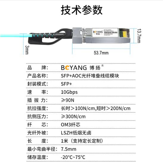 博扬 SFP+AOC光纤线缆 万兆10G有源光缆 直连高速电缆带模块 1米 适配华为思科Intel锐捷等BY-SFP-10G-AOC1M*1 合格证*1