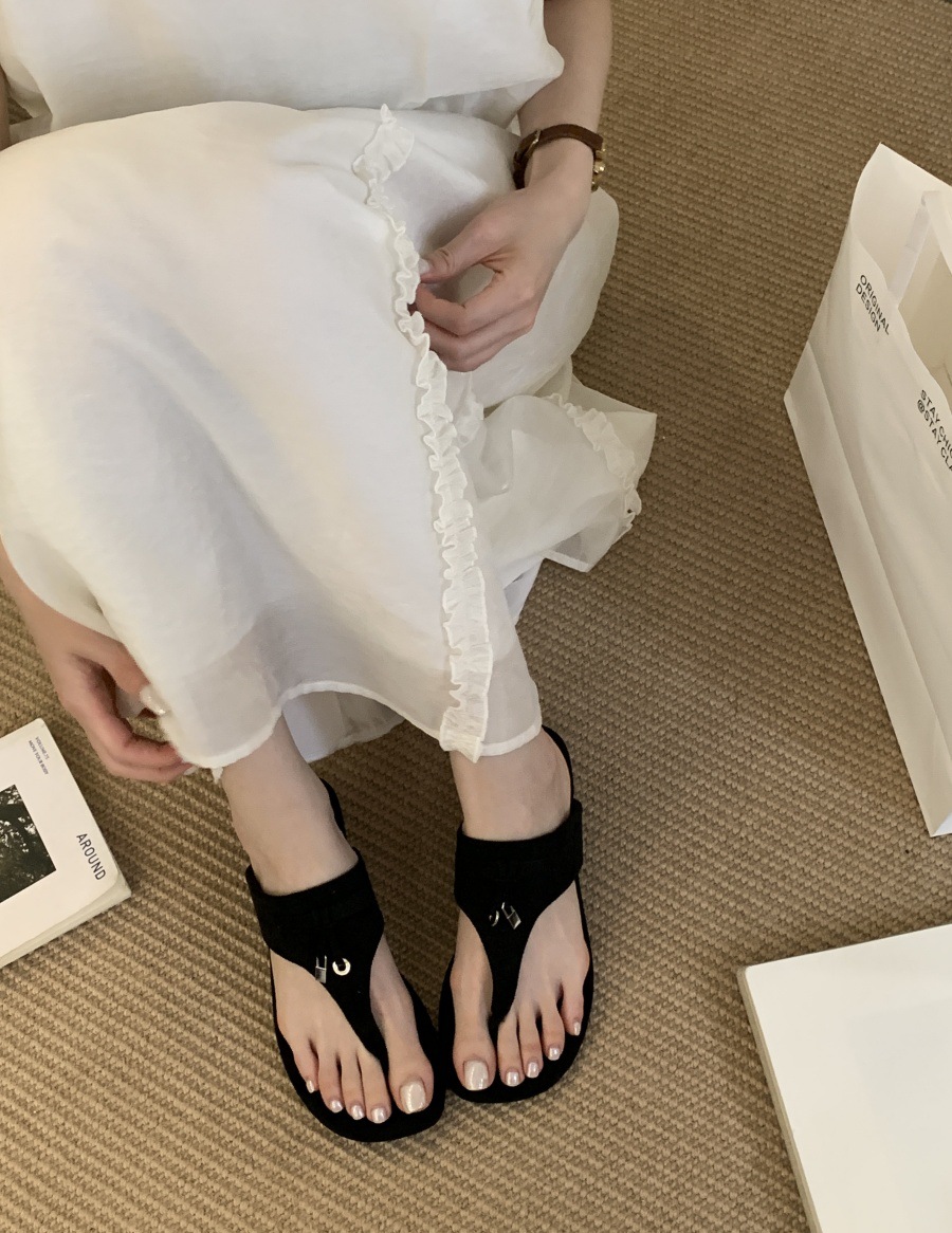 정품 가죽 플랫폼 플립 플롭 아웃웨어 2025 빈티지 플립 플롭 슬립 온 캐주얼 비치 샌들 버켄 스톡