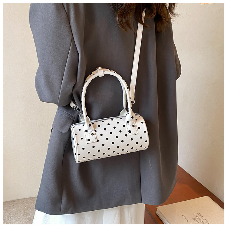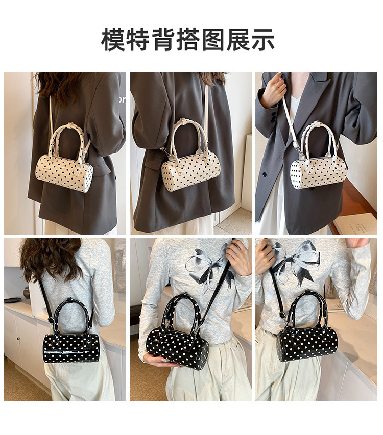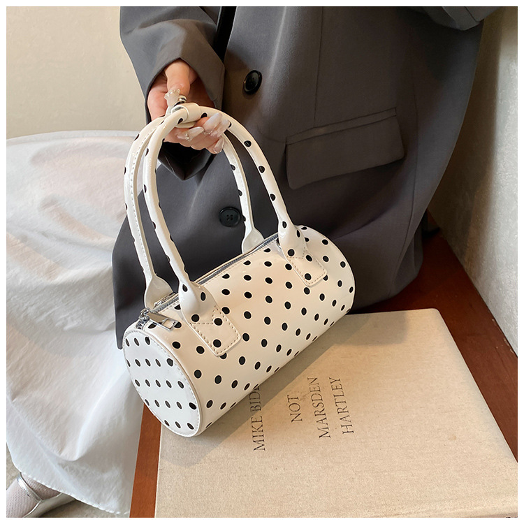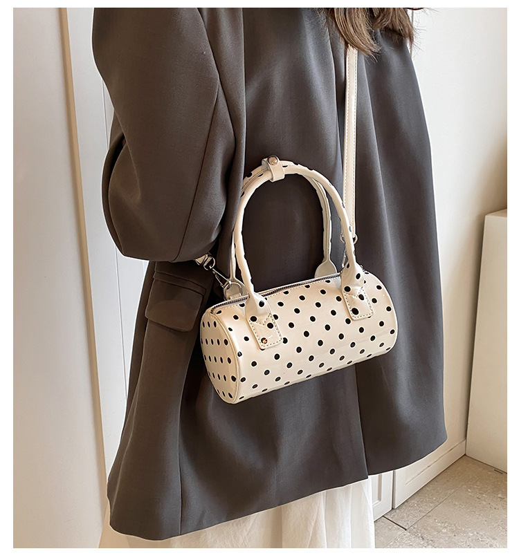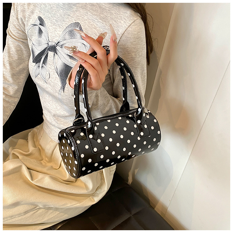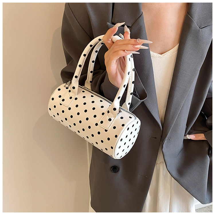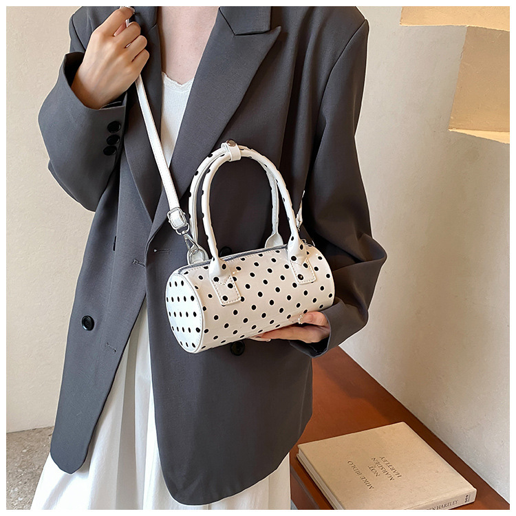 여성을위한 슈퍼 핫 폴카 도트 휴대용 원통형 가방 2024 새로운 한국어 틈새 싱글 숄더 크로스 바디 백 다용도 보스턴 백스토어 가기