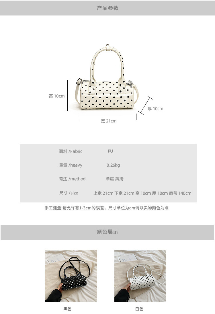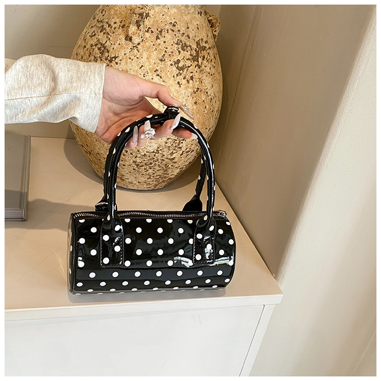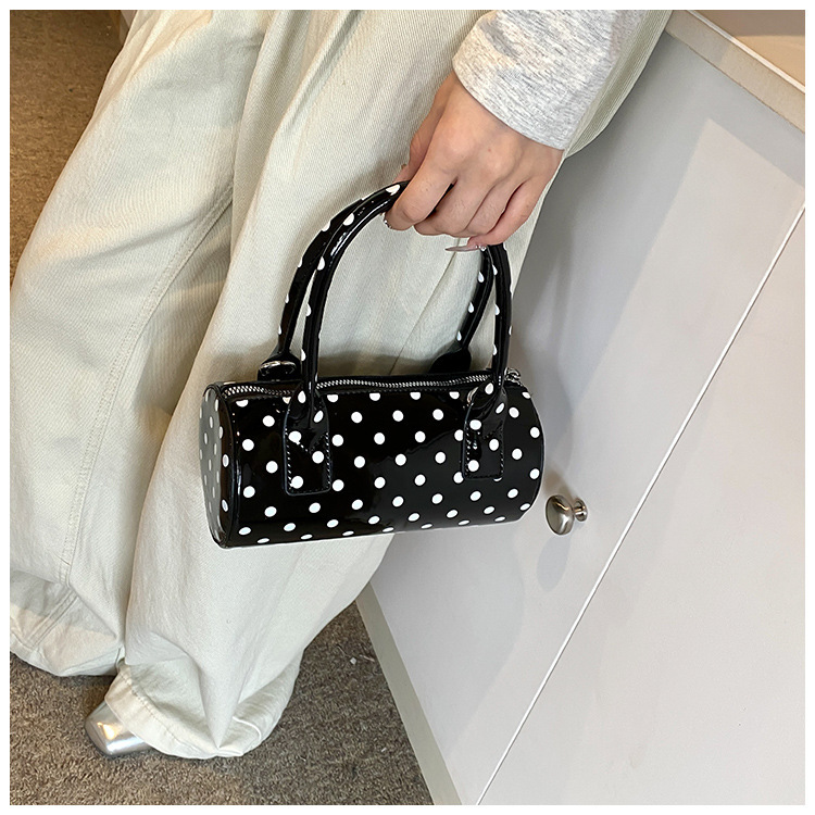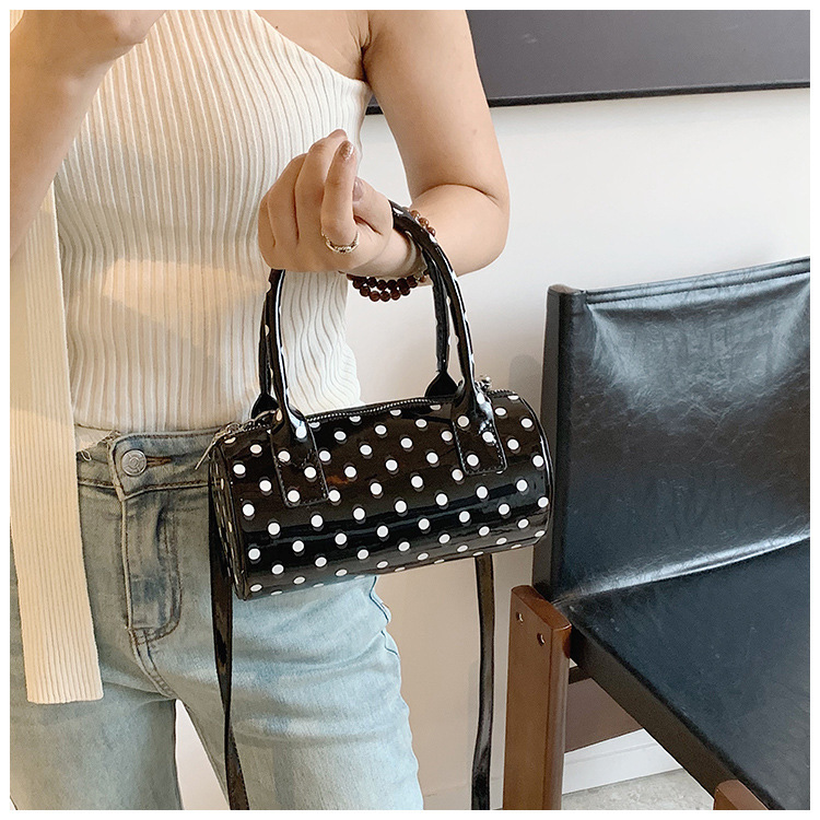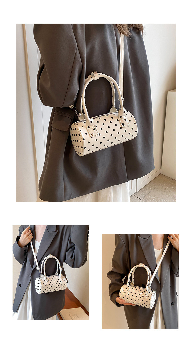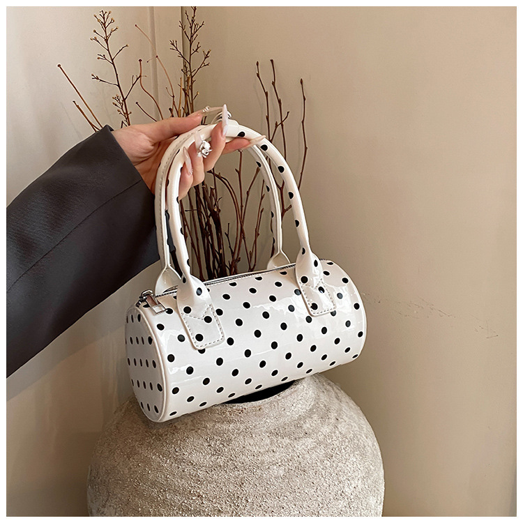 여성을위한 슈퍼 핫 폴카 도트 휴대용 원통형 가방 2024 새로운 한국어 틈새 싱글 숄더 크로스 바디 백 다용도 보스턴 백스토어 가기