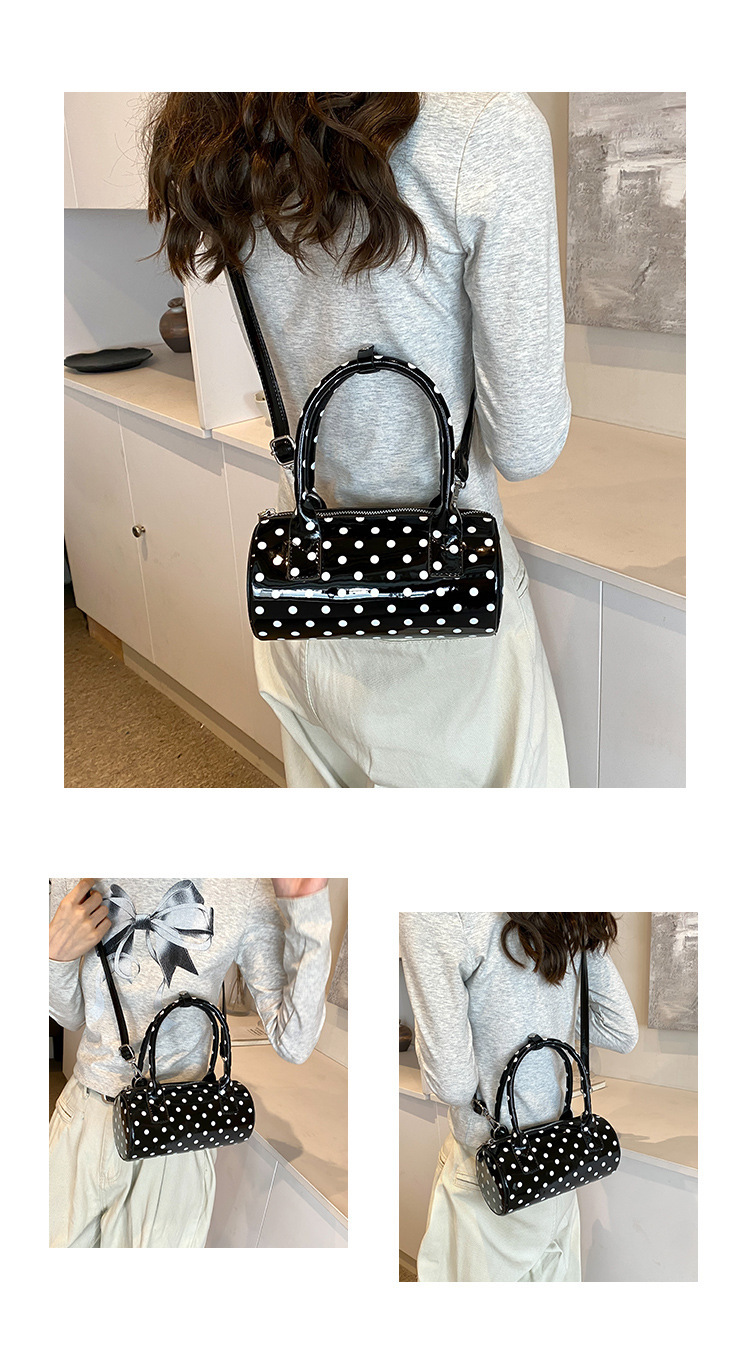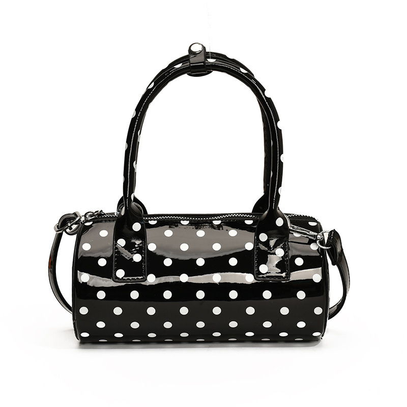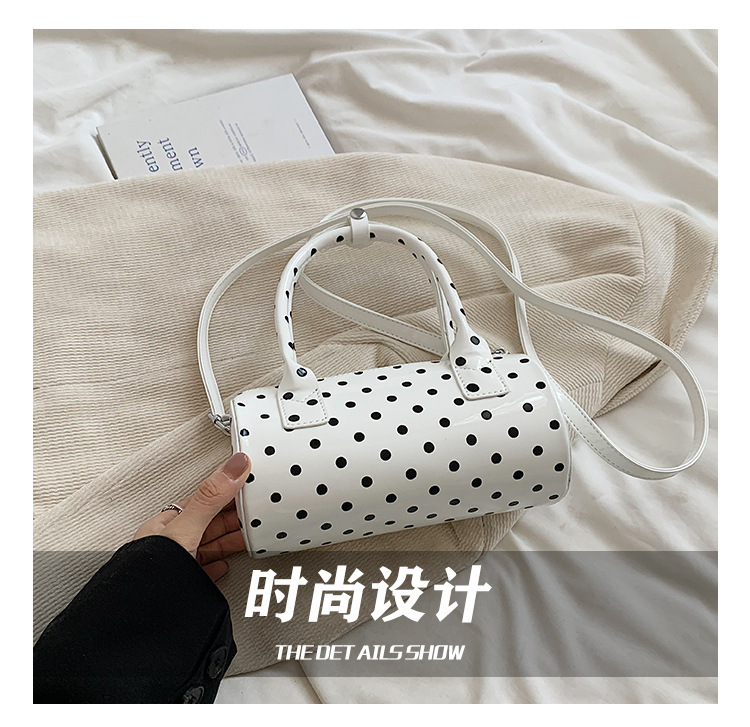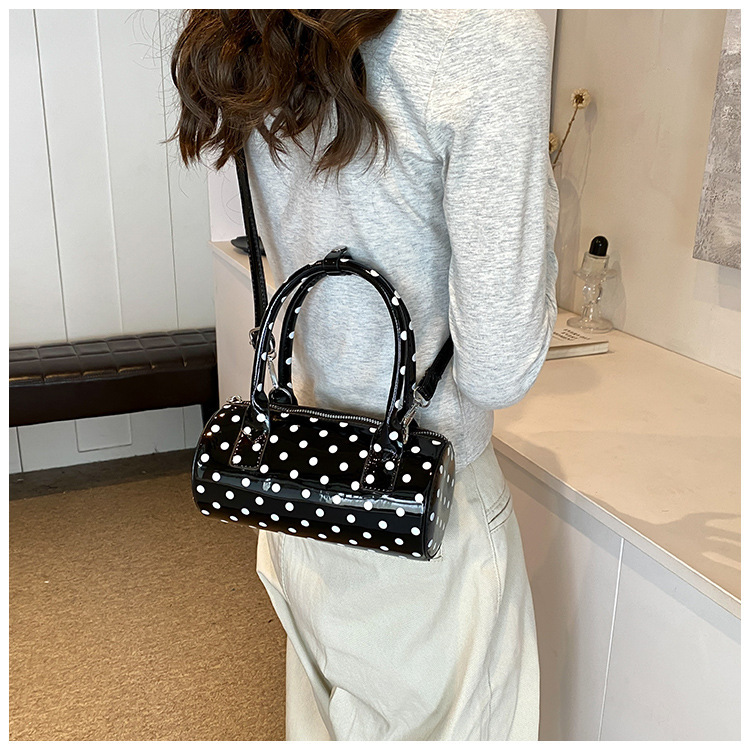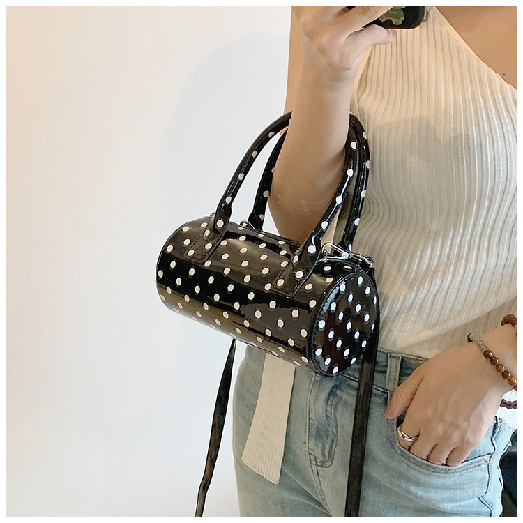 여성을위한 슈퍼 핫 폴카 도트 휴대용 원통형 가방 2024 새로운 한국어 틈새 싱글 숄더 크로스 바디 백 다용도 보스턴 백