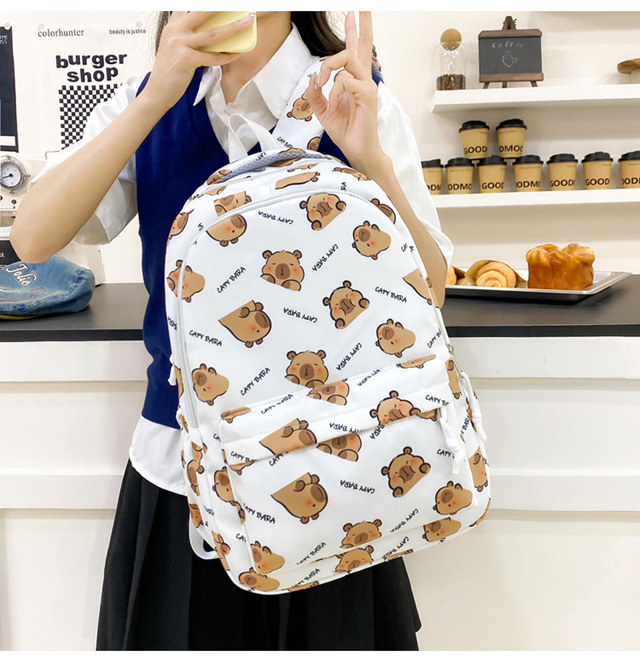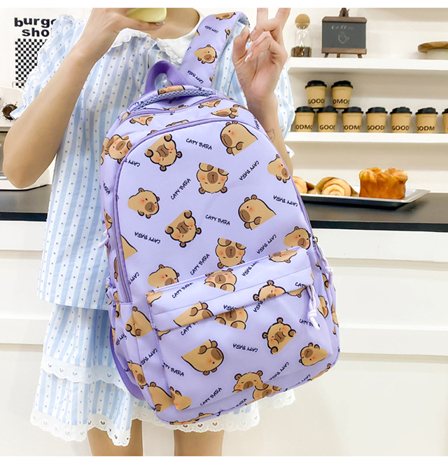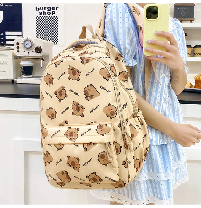 카피바라 배낭 귀여운 고급 배낭 만화 중학생 학교 가방 대용량 배낭
