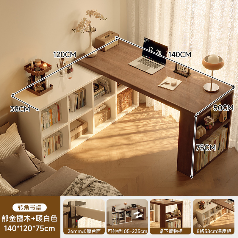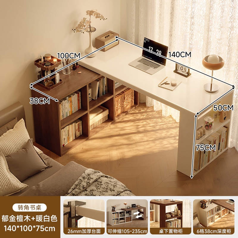 • 【웜화이트 & 샌달우드 색상 상판 조합】 140 테이블 * 100 수납장