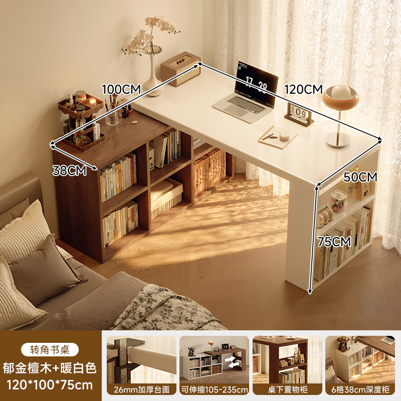 • 【웜화이트 & 샌달우드 색상 상판 조합】 120 테이블 * 100 수납장