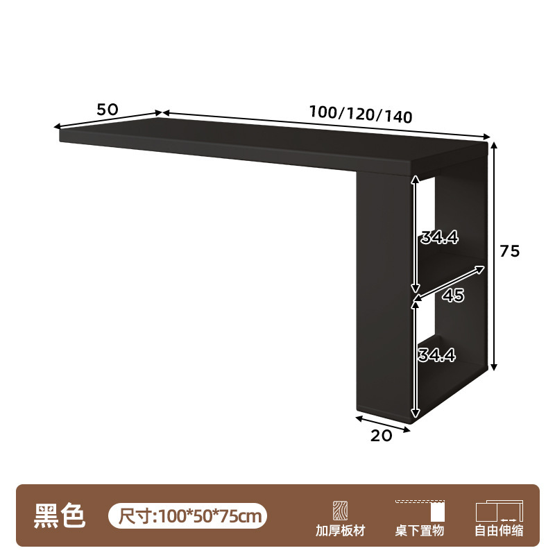 • 【자유 조합 26mm 데스크탑 수납 공간 포함】140*50 싱글 데스크 블랙