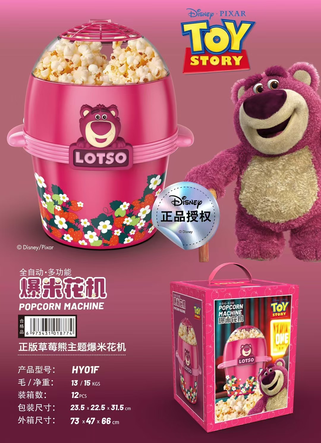 디즈니 팝콘 기계 완전 자동 미니 소형 시각적 가정용 수제 어린이 소년 소녀 생일 선물스토어 가기