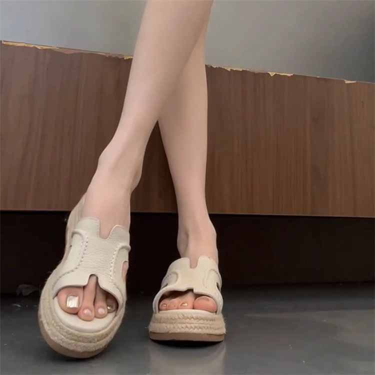 여성을위한 작은 두꺼운 밑창 슬리퍼 2025 새로운 여름 겉옷 스커트와 샌들와 매치 한 웨지 힐 샌들