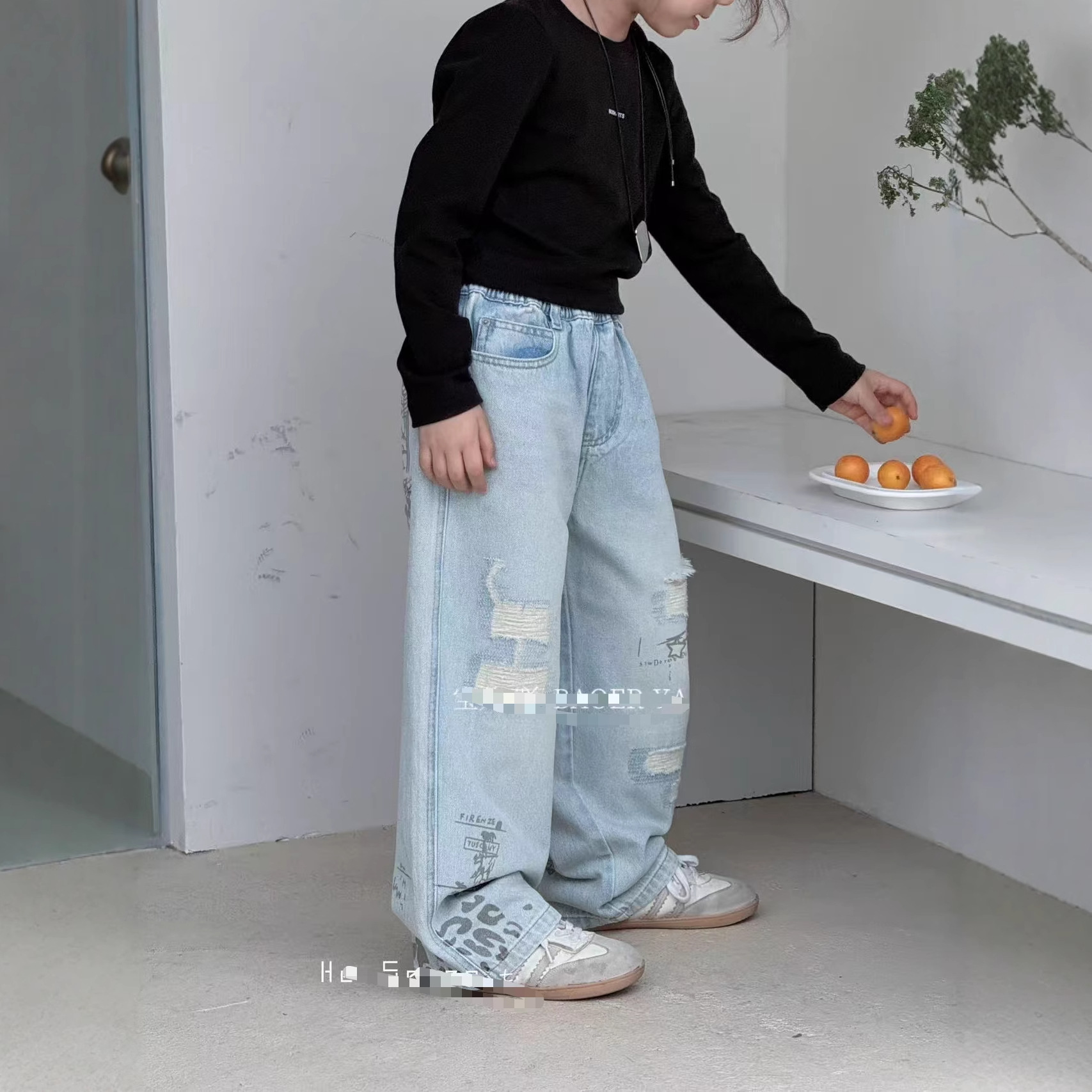A24 그래피티 데님 스트레이트 팬츠 한국판 중대형 아동용 반품 불가