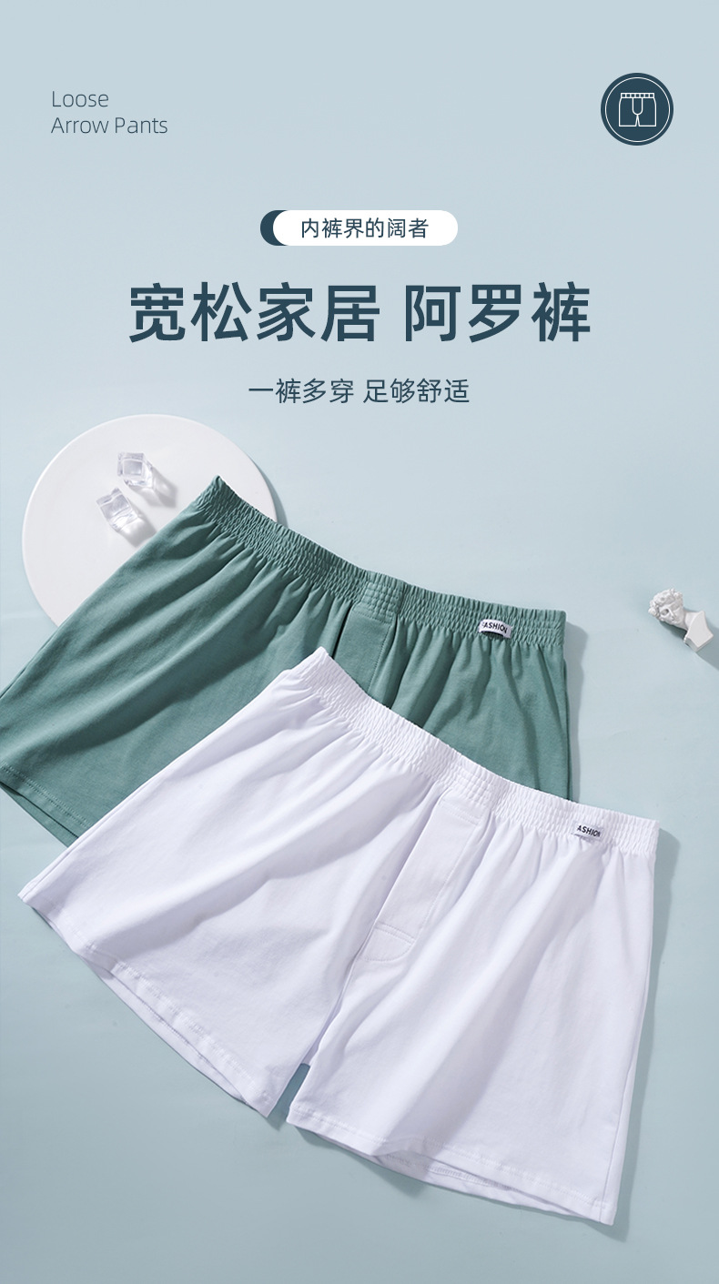 순면 라지팬츠, 파자마팬츠, 캐주얼 스포츠반바지, 라지사이즈 남성용 사각팬티, 애로우팬츠, 트렌디해 밖에서 착용 가능