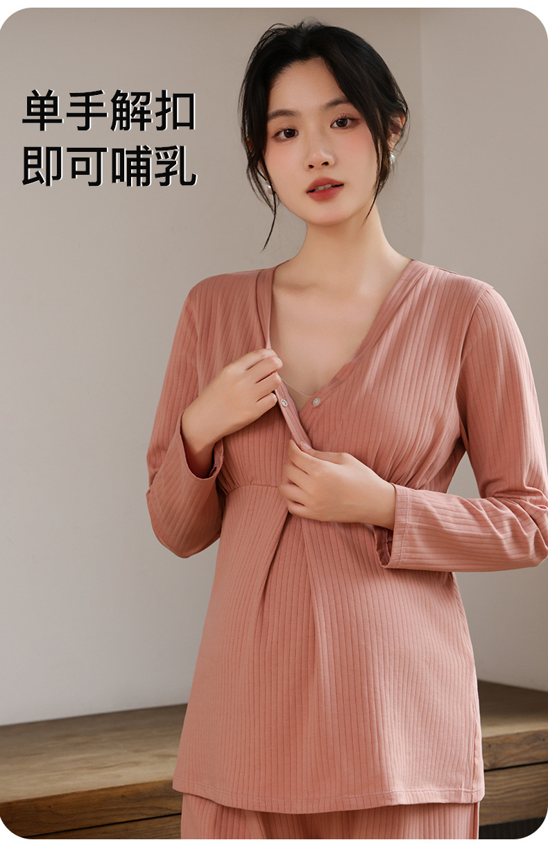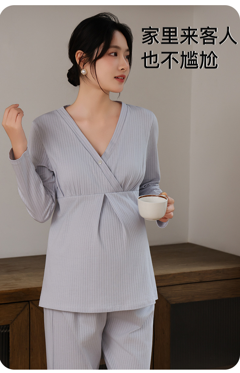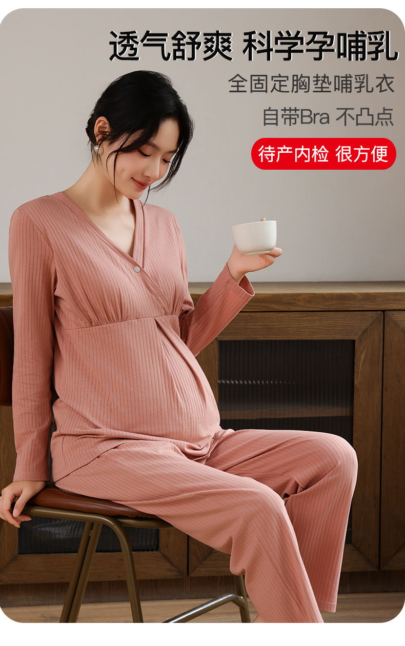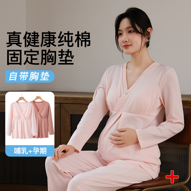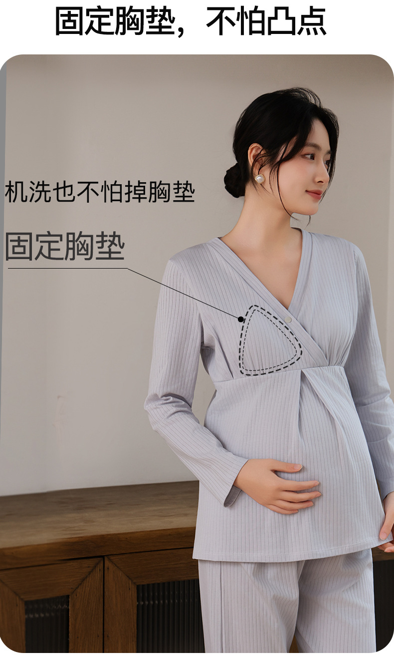 순면 산후복, 얇은 산후 봄, 여름, 가을, 가슴 패드가 있는 수유 잠옷, 임산부 수유 잠옷, 홈웨어, 임신 중스토어 가기