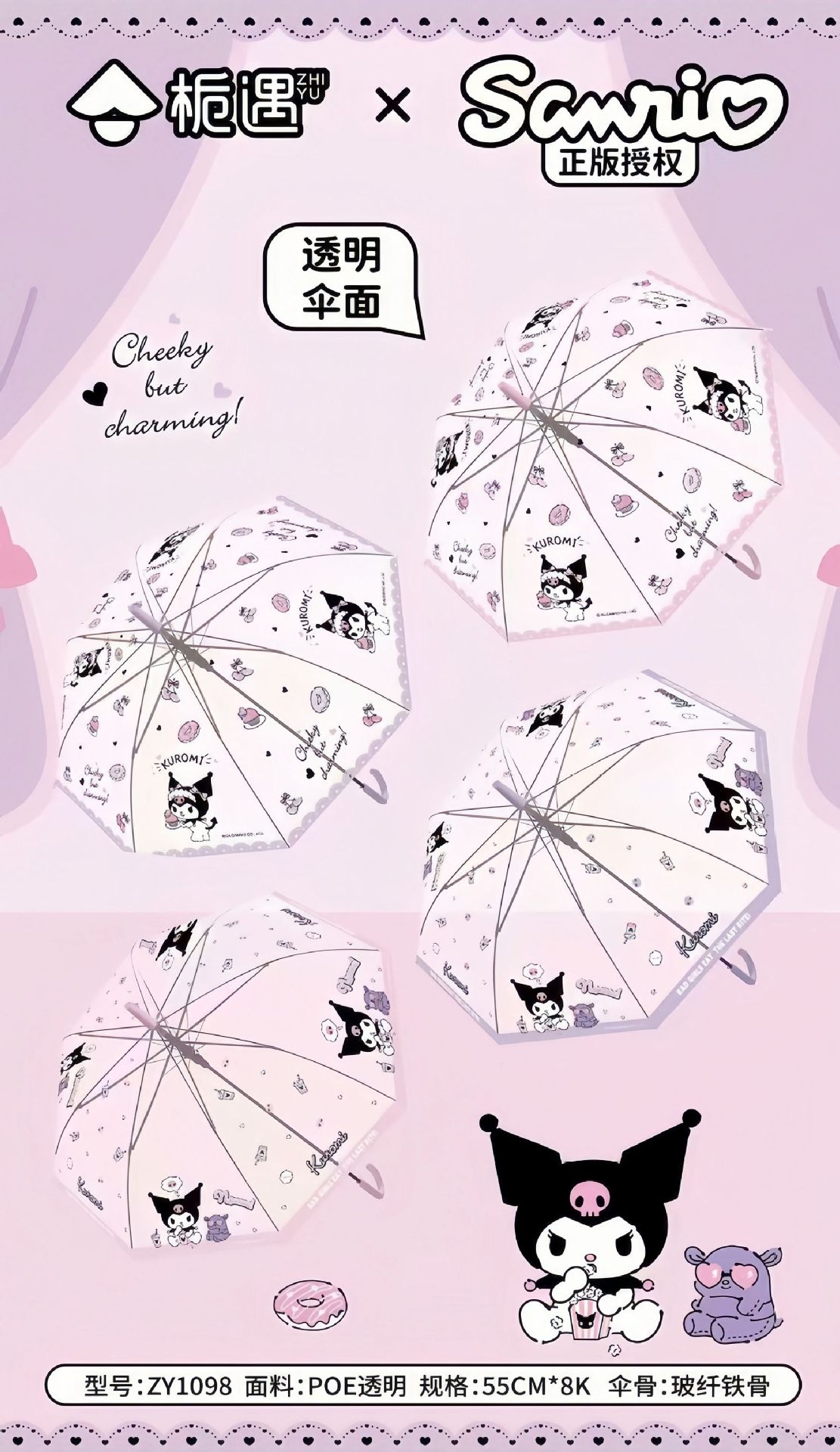 • Feitian Pig Kuromi 긴 손잡이 우산 - 고품질