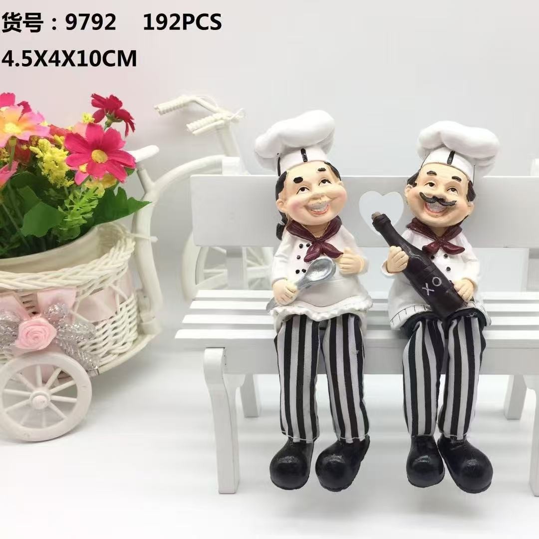 서양 레스토랑 요리사 수지 공예 장식품 바지 다리 인형 커플 미국 요리사 거실 레스토랑 장식품 장식스토어 가기