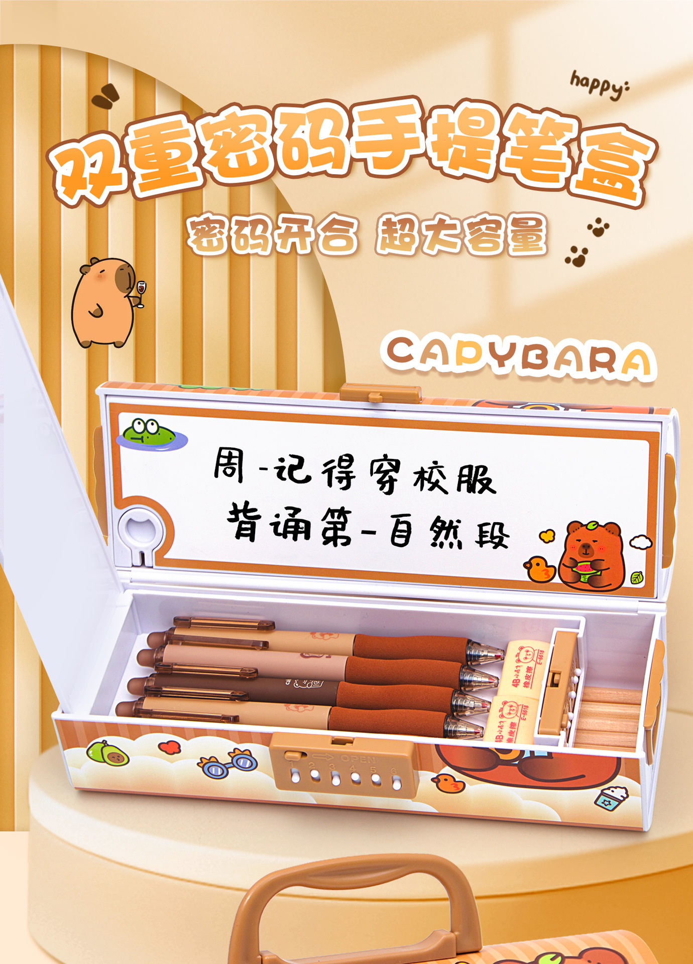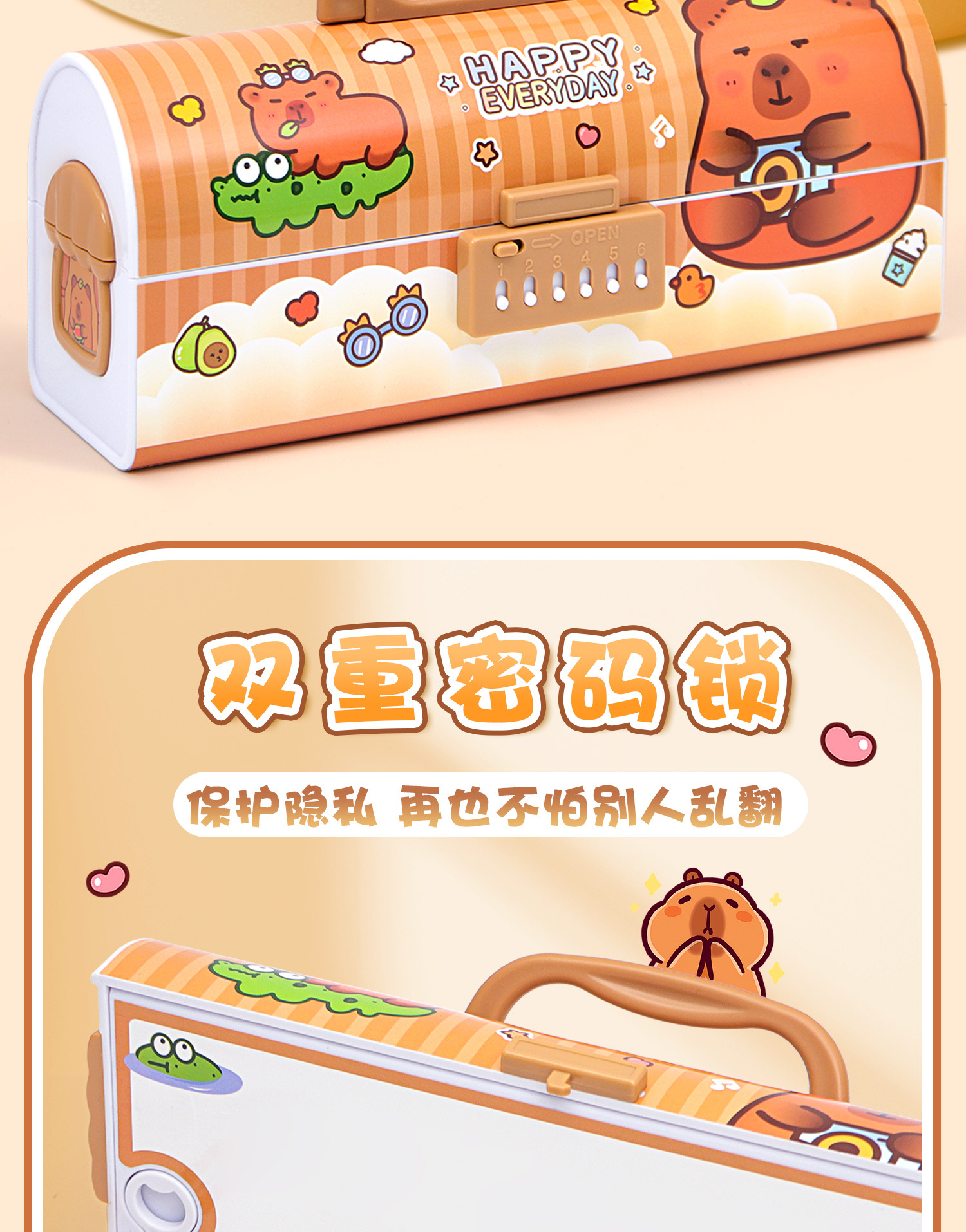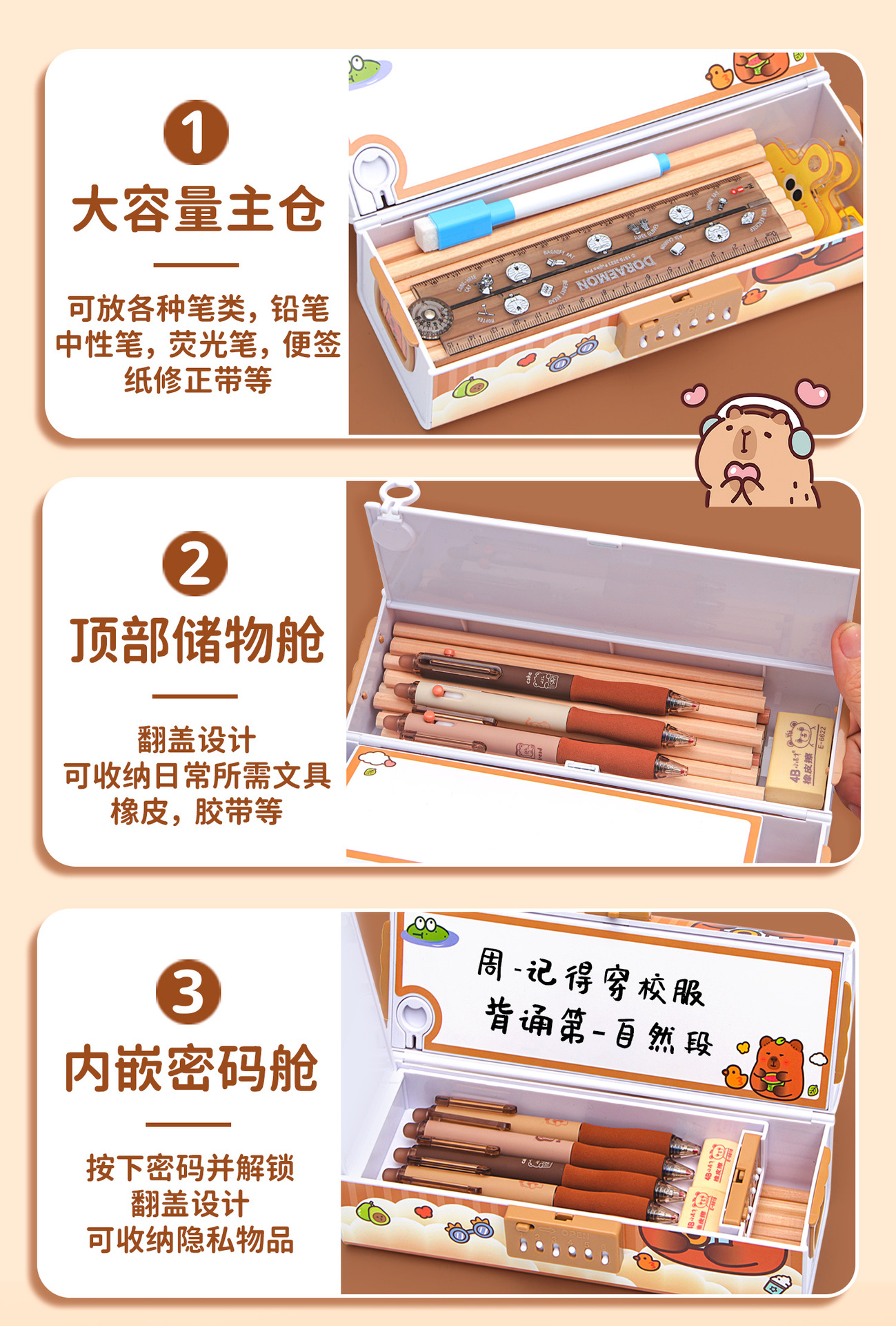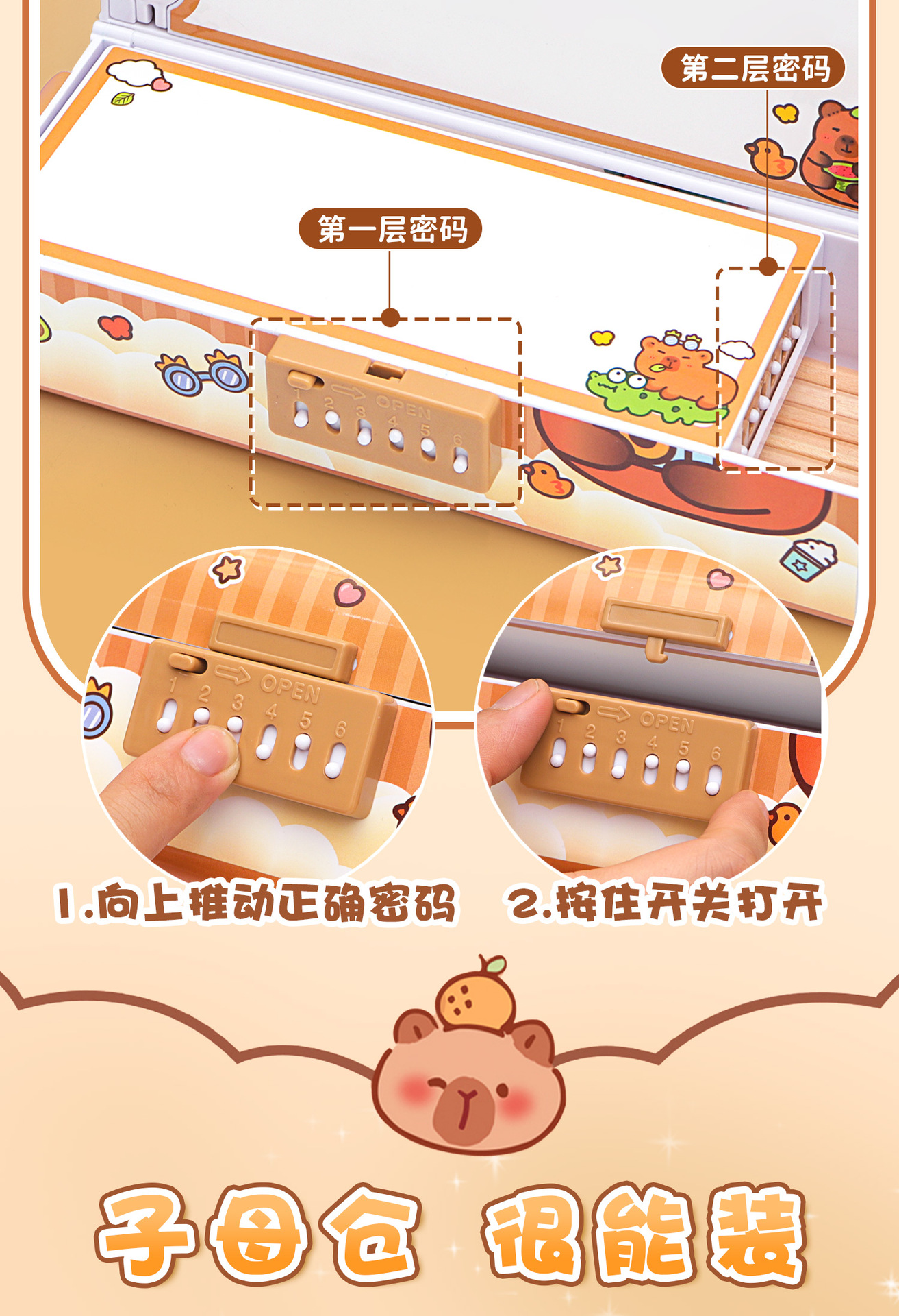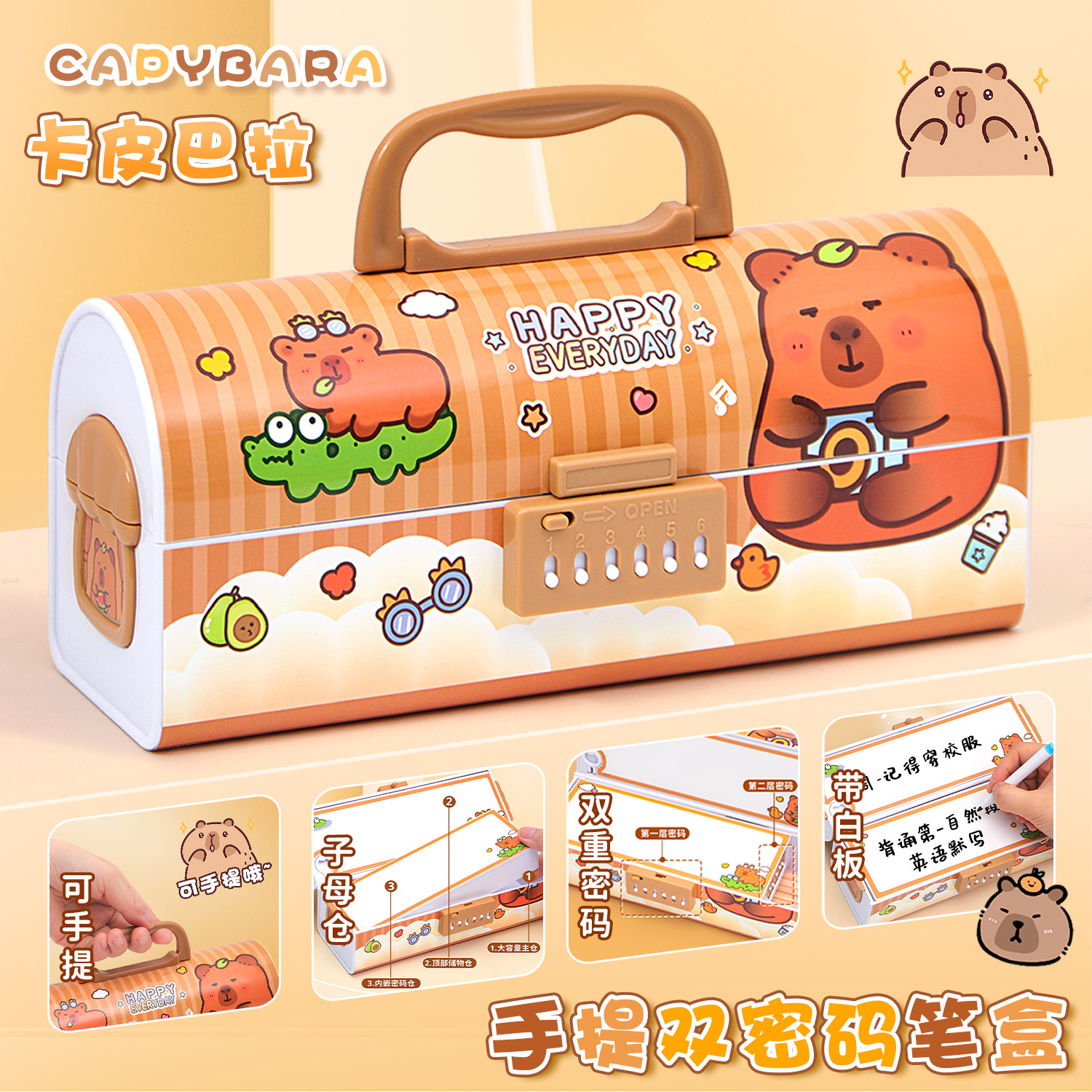 Kapibala 비밀번호 잠금 문구 상자 초등학생 어린이 유치원 소녀 연필 상자 드로잉 보드 문구 상자