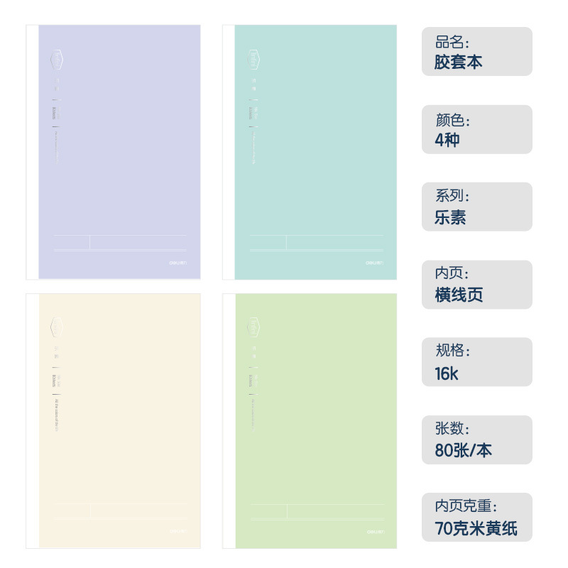 델리 T1680 고무 슬리브 16K 노트 학생 사무실 노트 메모장 스티치 노트 80페이지