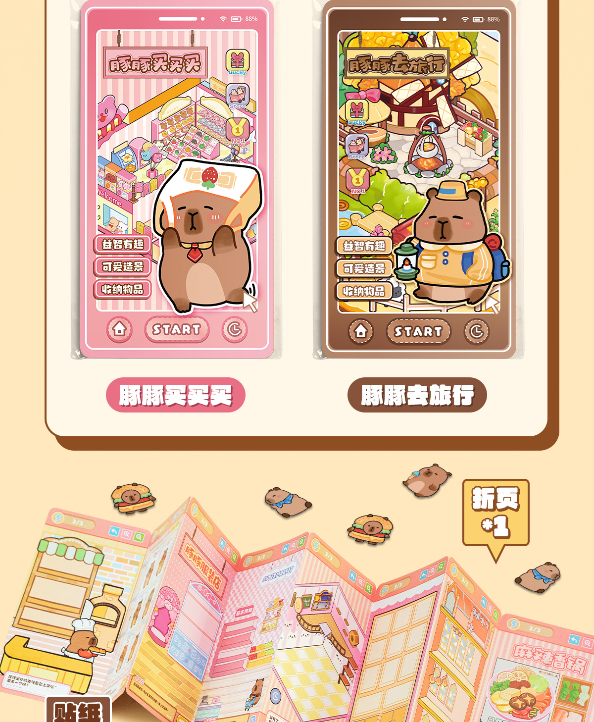 Yan She 핸드 헬드 게임 북 크리에이티브 스티커 재미있는 Kapi Barakatong 장면 스티커 어린이 수제 리콜