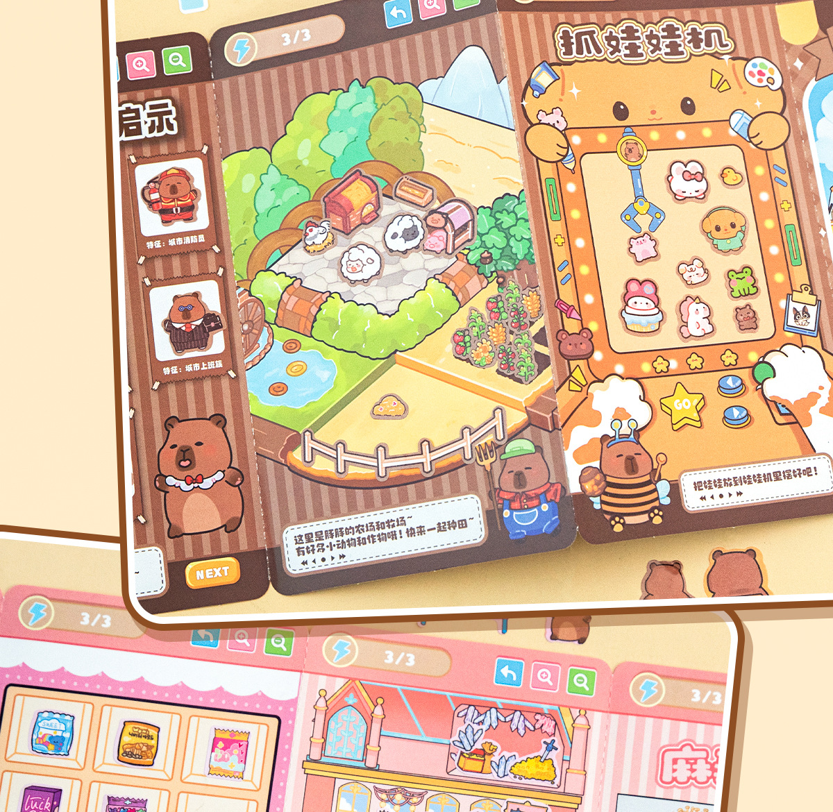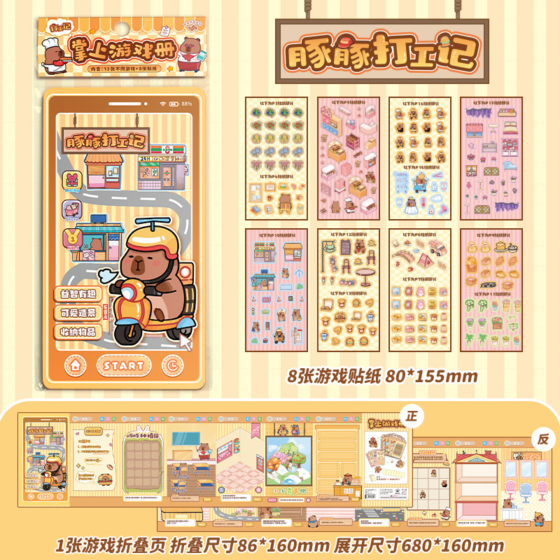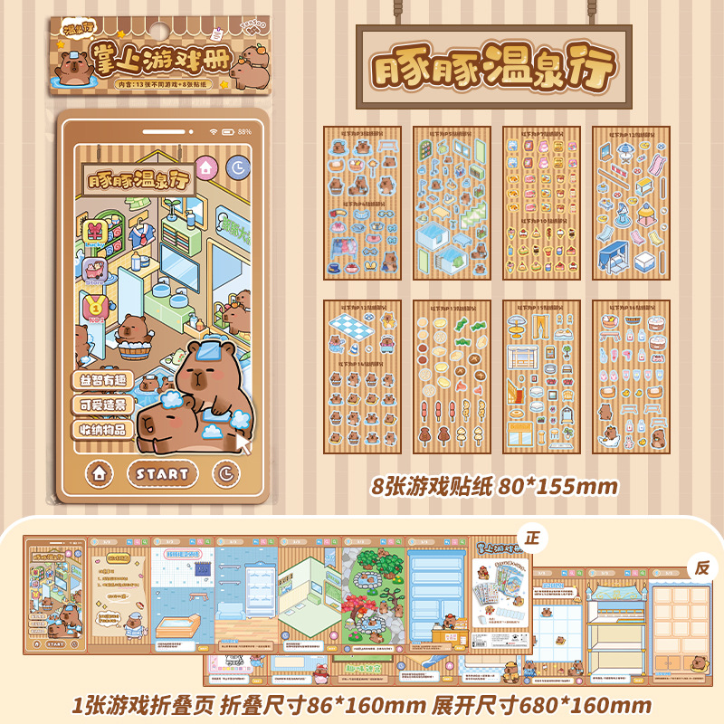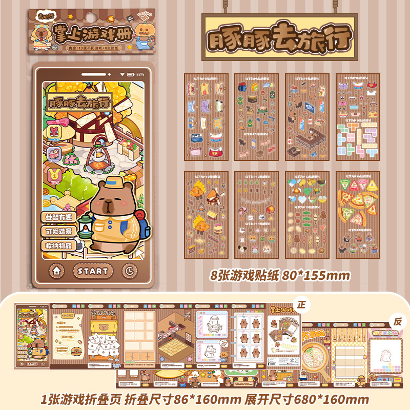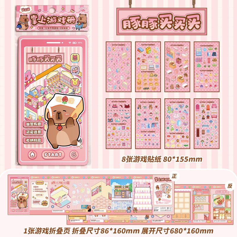 Yan She 핸드 헬드 게임 북 크리에이티브 스티커 재미있는 Kapi Barakatong 장면 스티커 어린이 수제 리콜스토어 가기