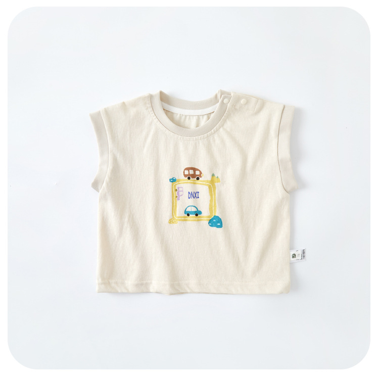 소년 자동차 조끼 세트 2025 여름 새로운 유아 만화 탑 데님 반바지 투피스 트렌디 세트스토어 가기