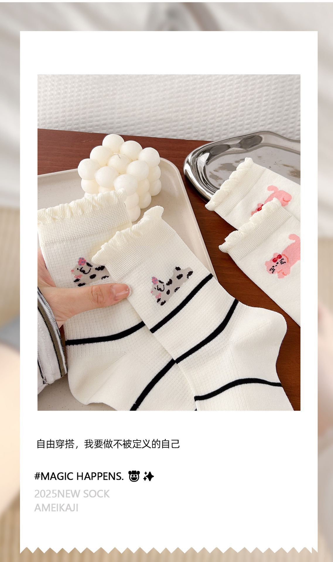2025 새로운 가을 스타일丨여성용 귀여운 강아지 양말, 흰색 레이스 인 트렌디 양말, 면 양말, 긴 양말