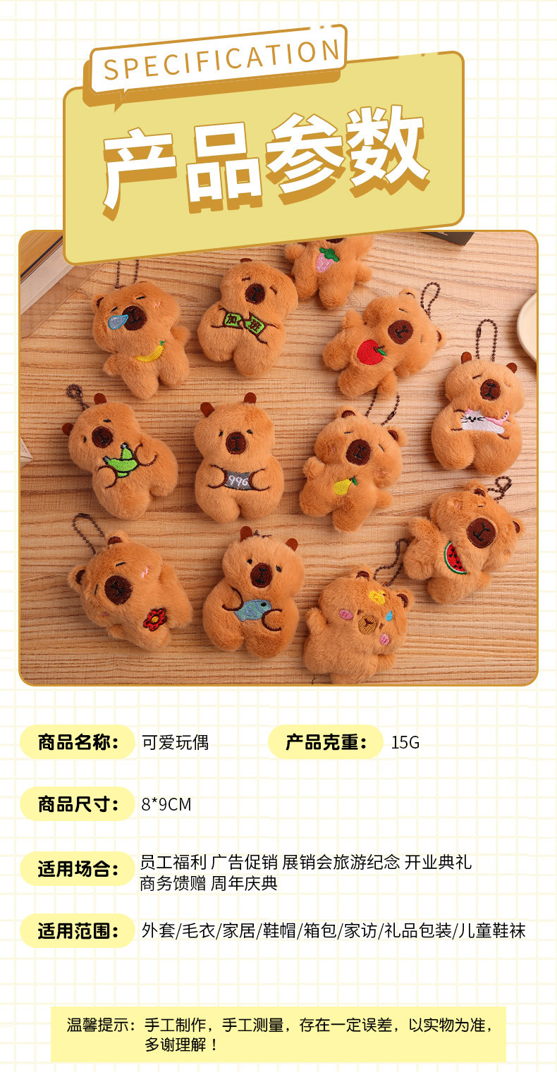 귀여운 플러시 삐걱거리는 만화 행운의 카피바라 인형 펜던트 카피바라 인형 펜던트 배낭 키 체인스토어 가기