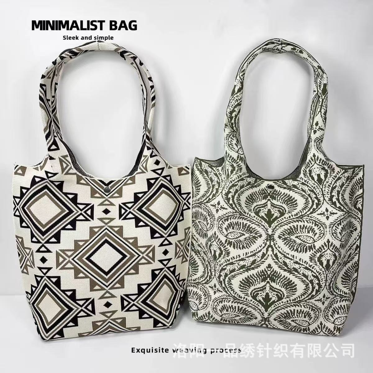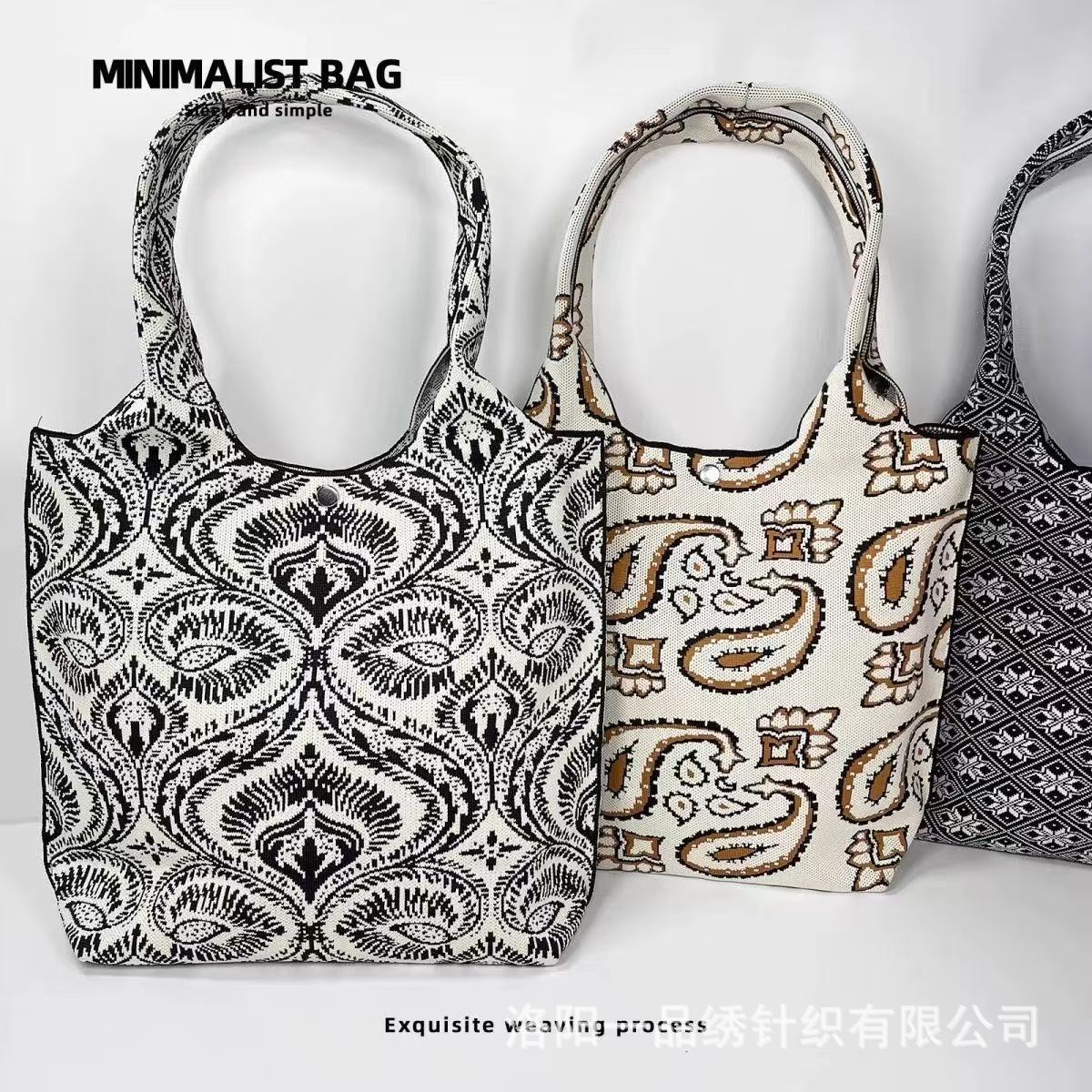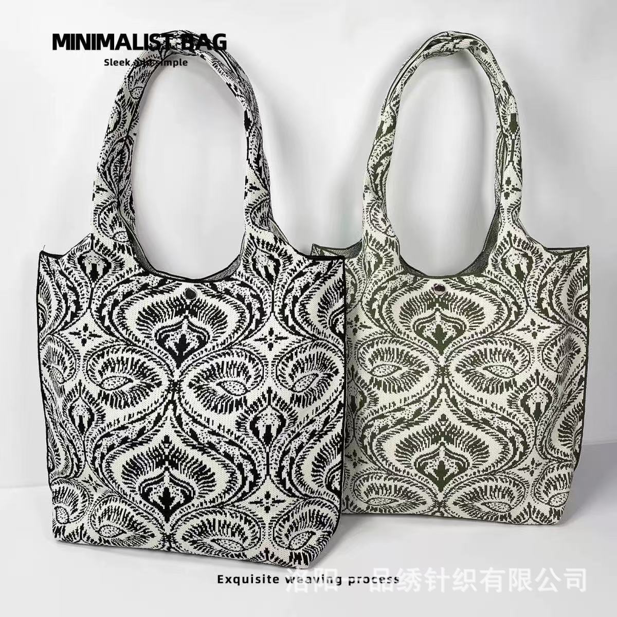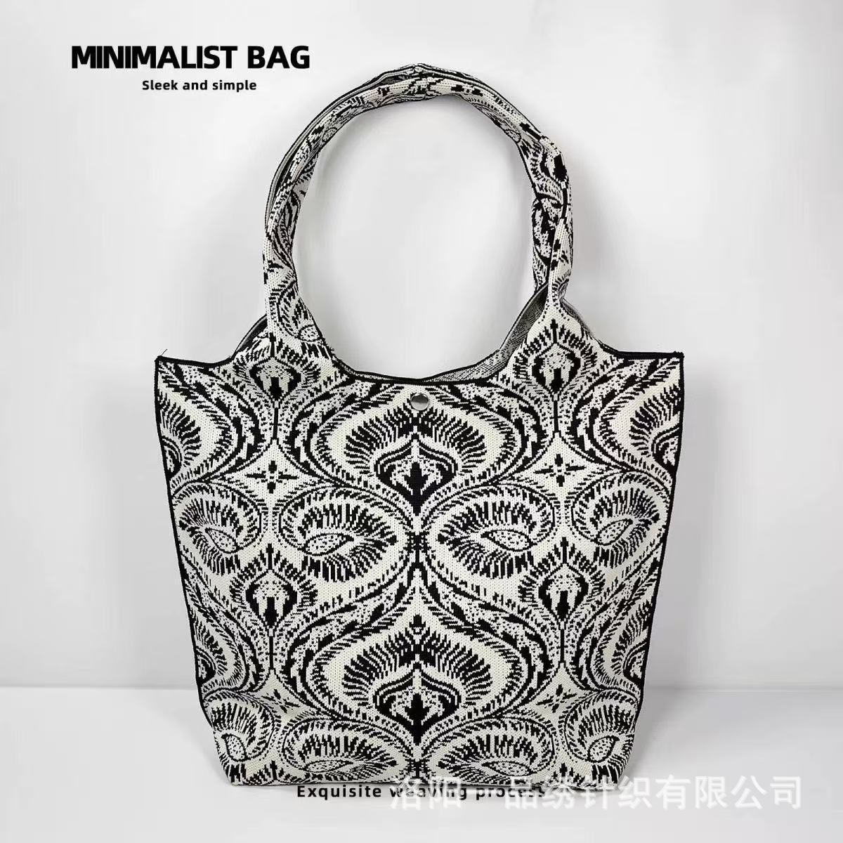 새로운 레트로 에델 레스 패턴 대용량 가방 유행 올 매치 버킷 가방 캐주얼 통근 어깨 가방 여성