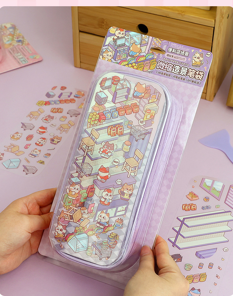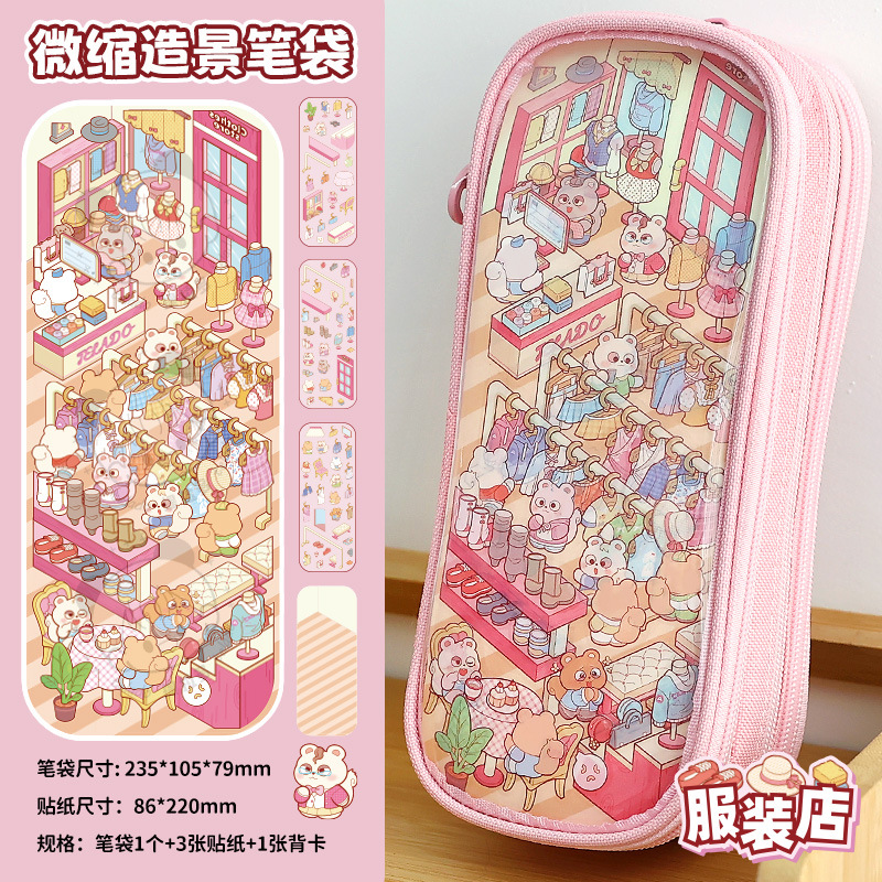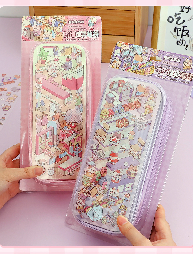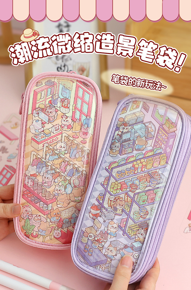 티라도 연필 가방 통증 연필 가방 마이크로 미니어처 풍경 DIY 대용량 투명 연필 가방 높은 색상 가치 학생 문구 상자스토어 가기