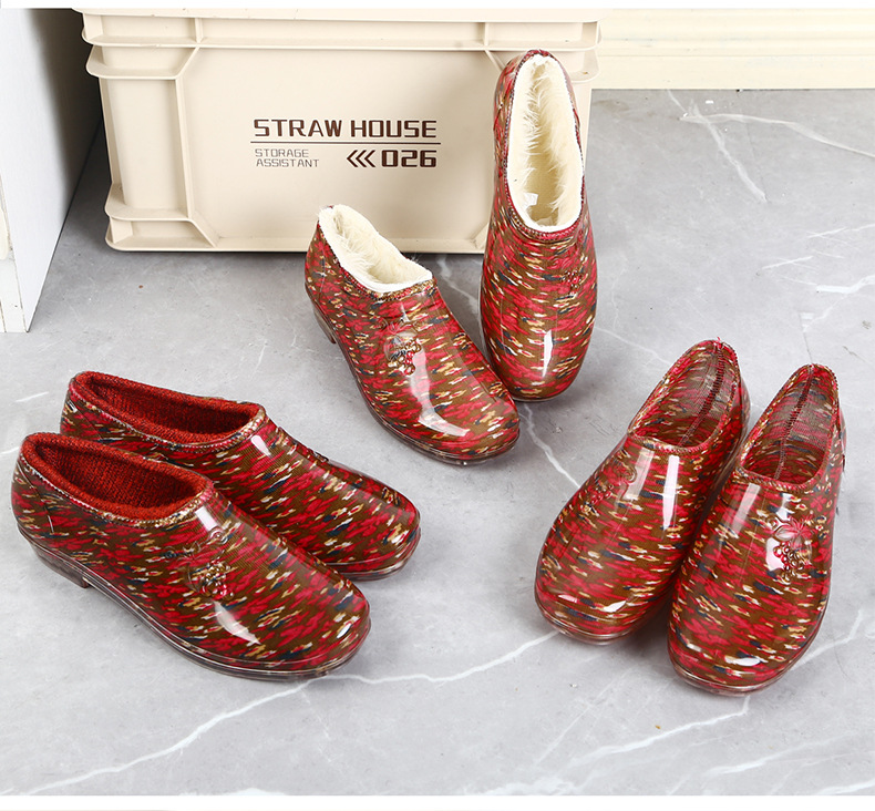 여성용 풀백 레인부츠 3083 로우탑 워터슈즈 봄, 가을 얕은 입 원반 신발 주방 미끄럼 방지 방수 부츠 내마모성 고무 신발스토어 가기