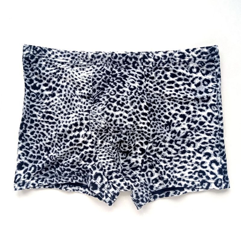 Junkuimei 파우치 스타일 남성용 로우 웨이스트 복서 팬티, 타이트 팬티, 스트레치 레오파드 프린트, 섹시한 원피스 드롭 배송