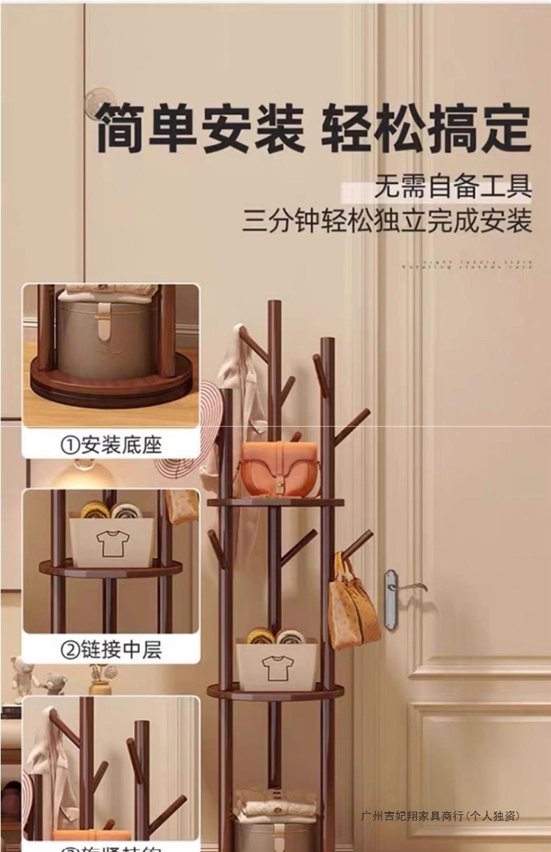회전 코트 랙 바닥 침실 거실 홈 코너 입구 입구 단단한 나무 간단한 수직 침대 옆 옷걸이