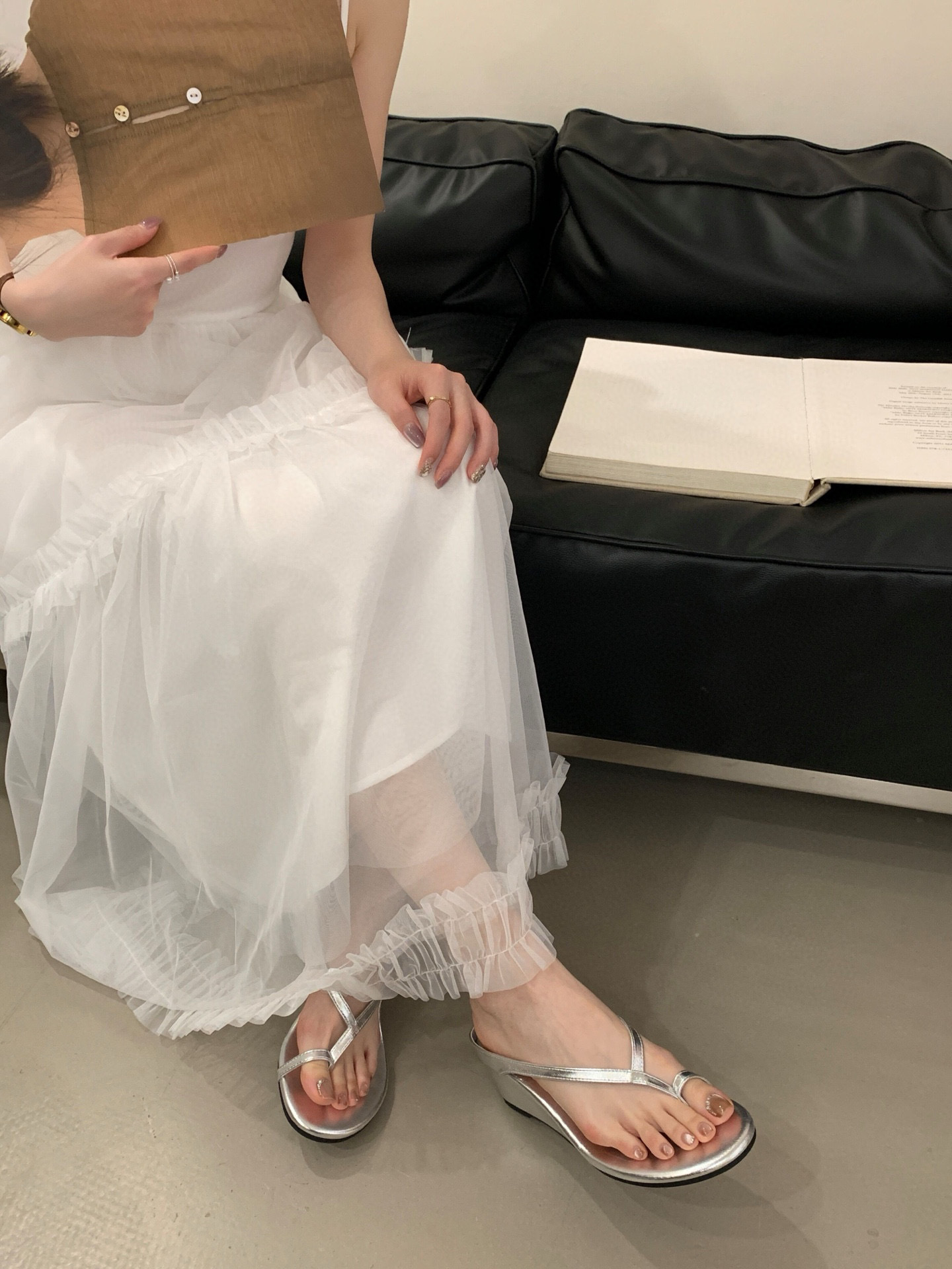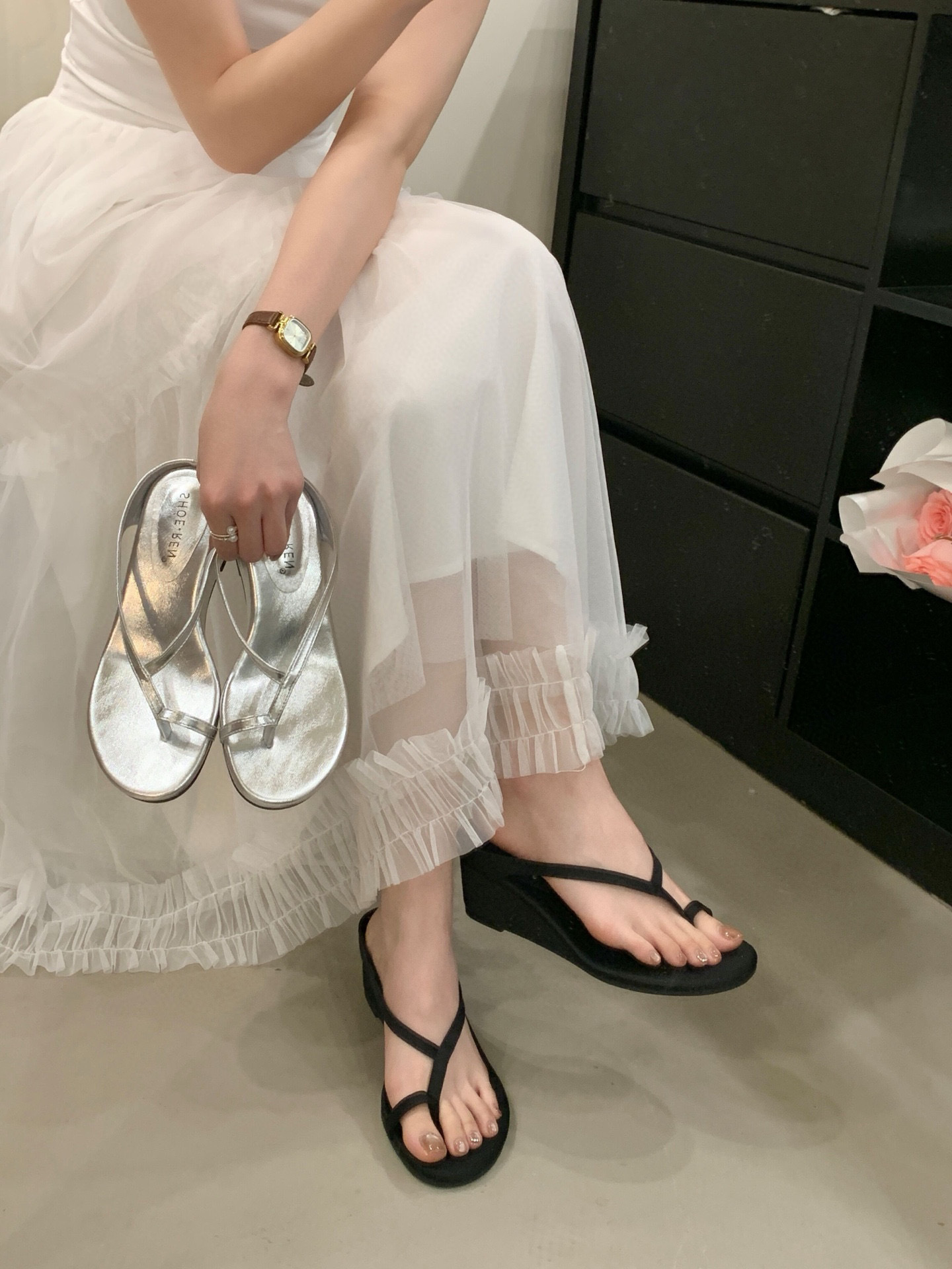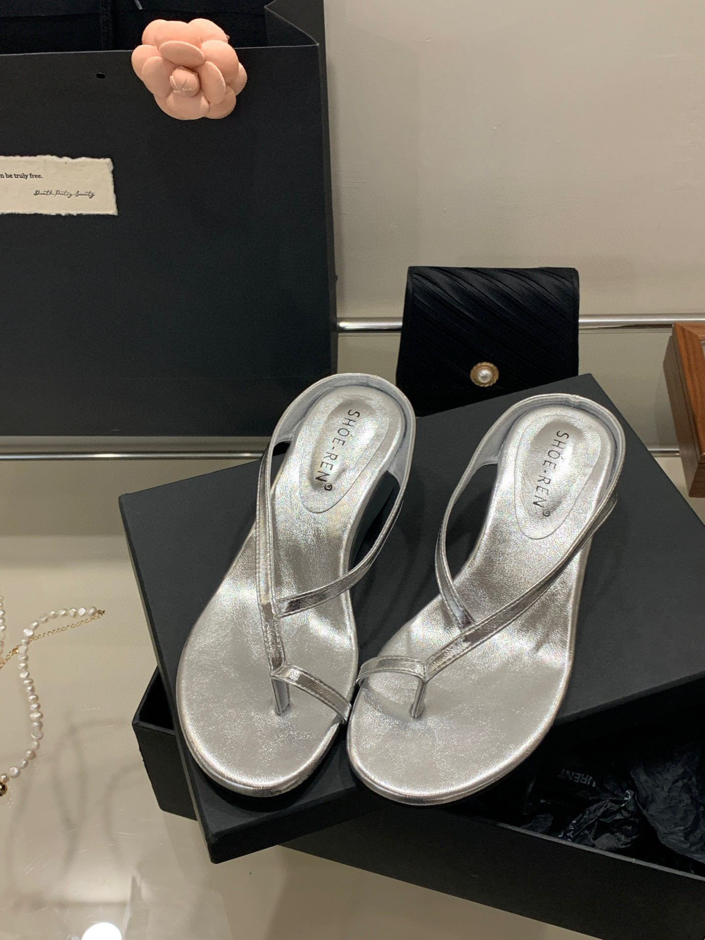 프랑스 스타일 우아한 실버 통 플립 플롭스 여성 여름 강화 웨지 페어리 스트랩 샌들 착용