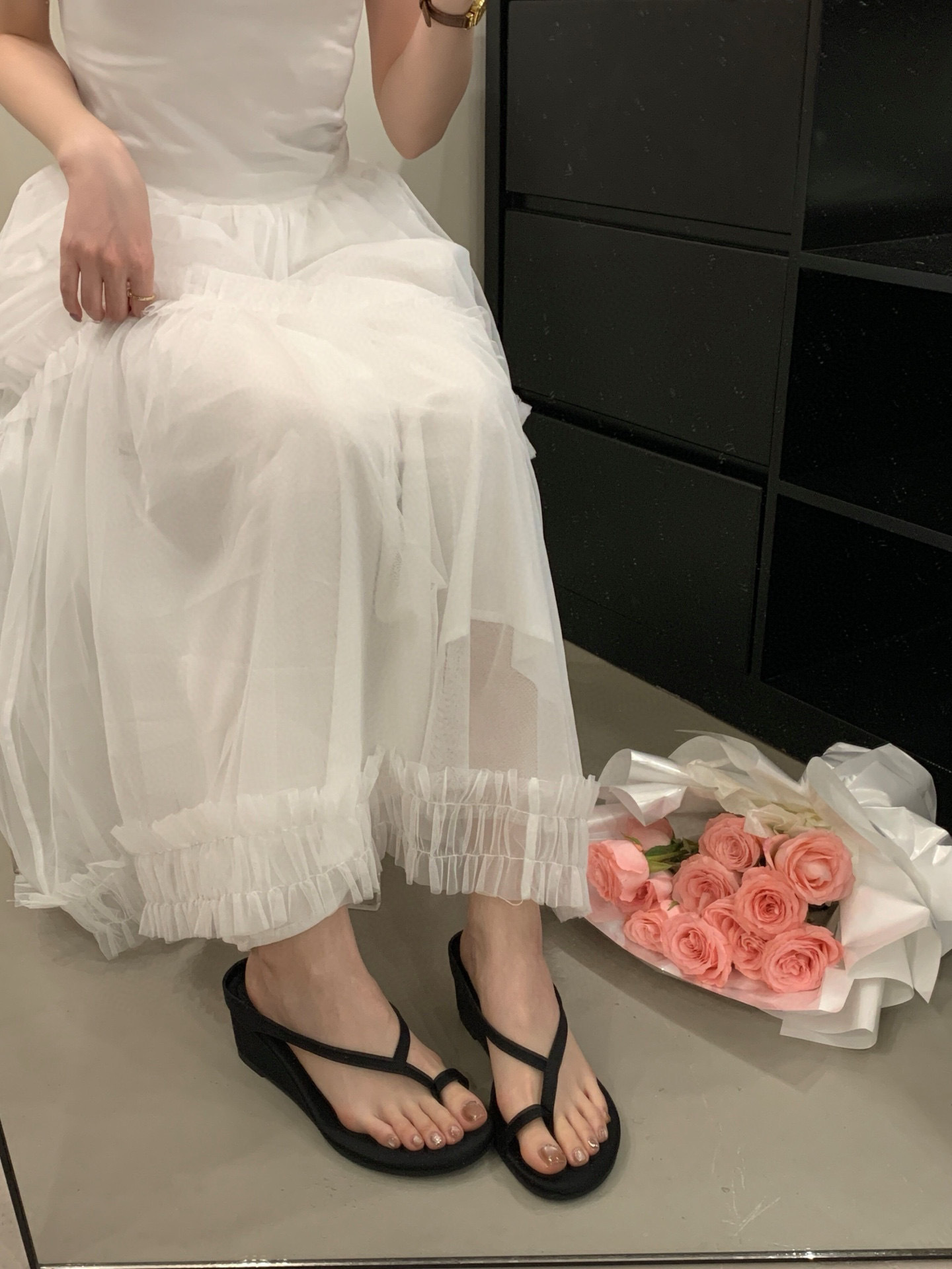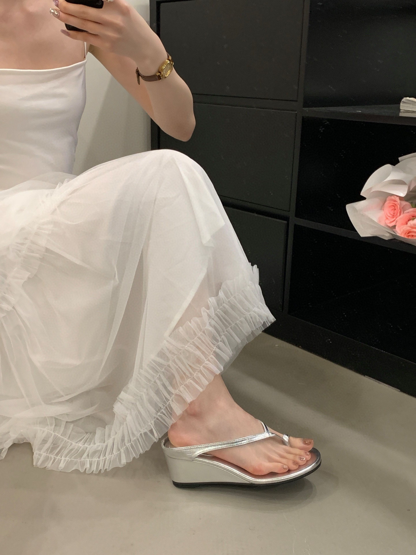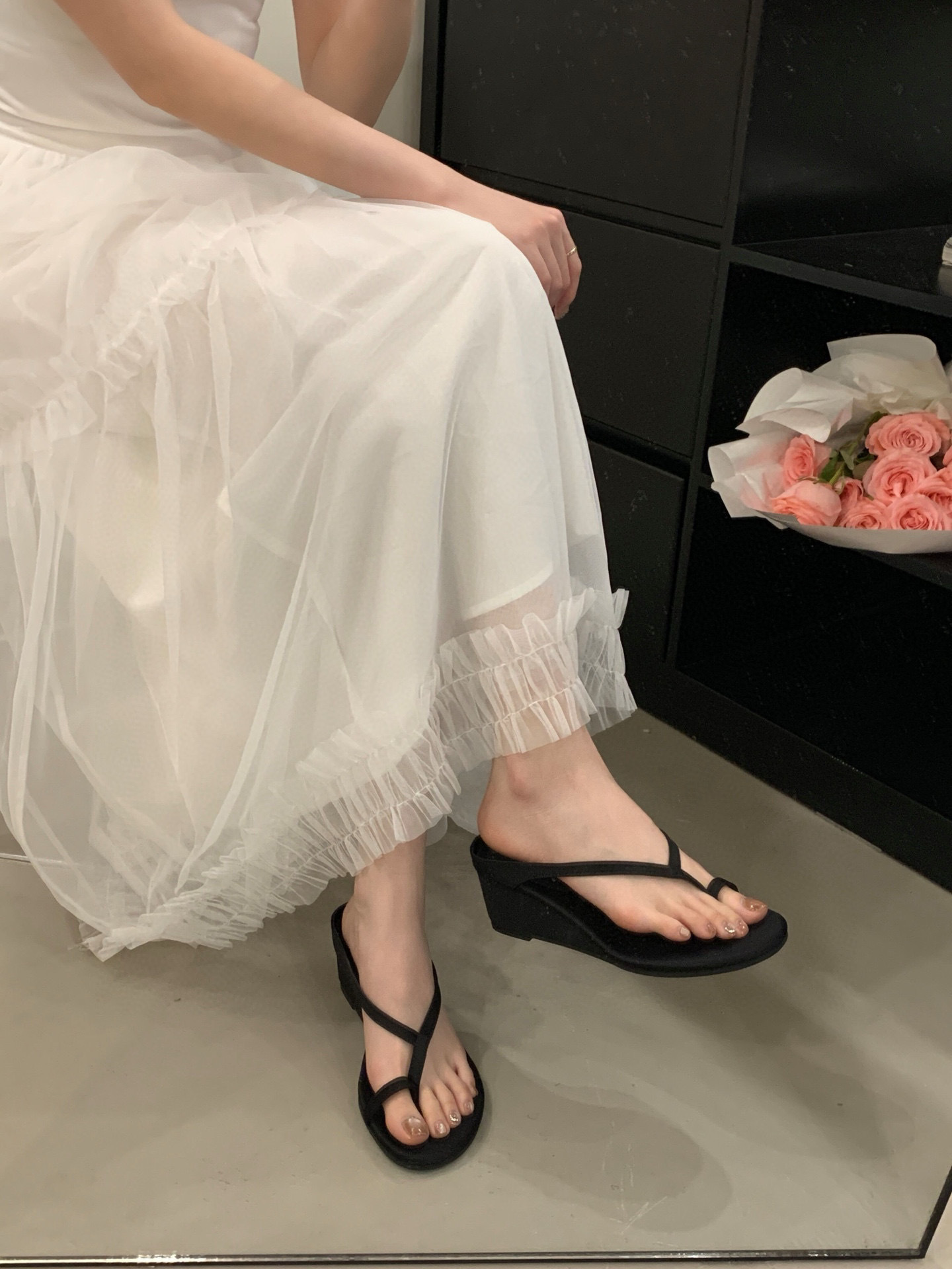 프랑스 스타일 우아한 실버 통 플립 플롭스 여성 여름 강화 웨지 페어리 스트랩 샌들 착용