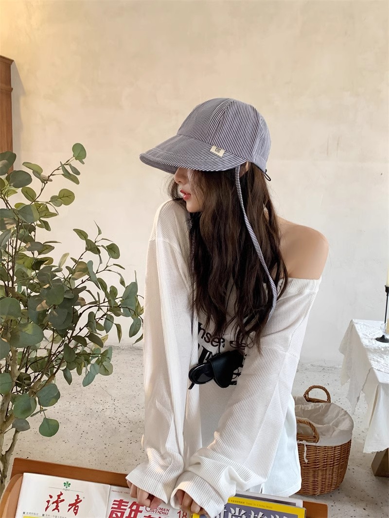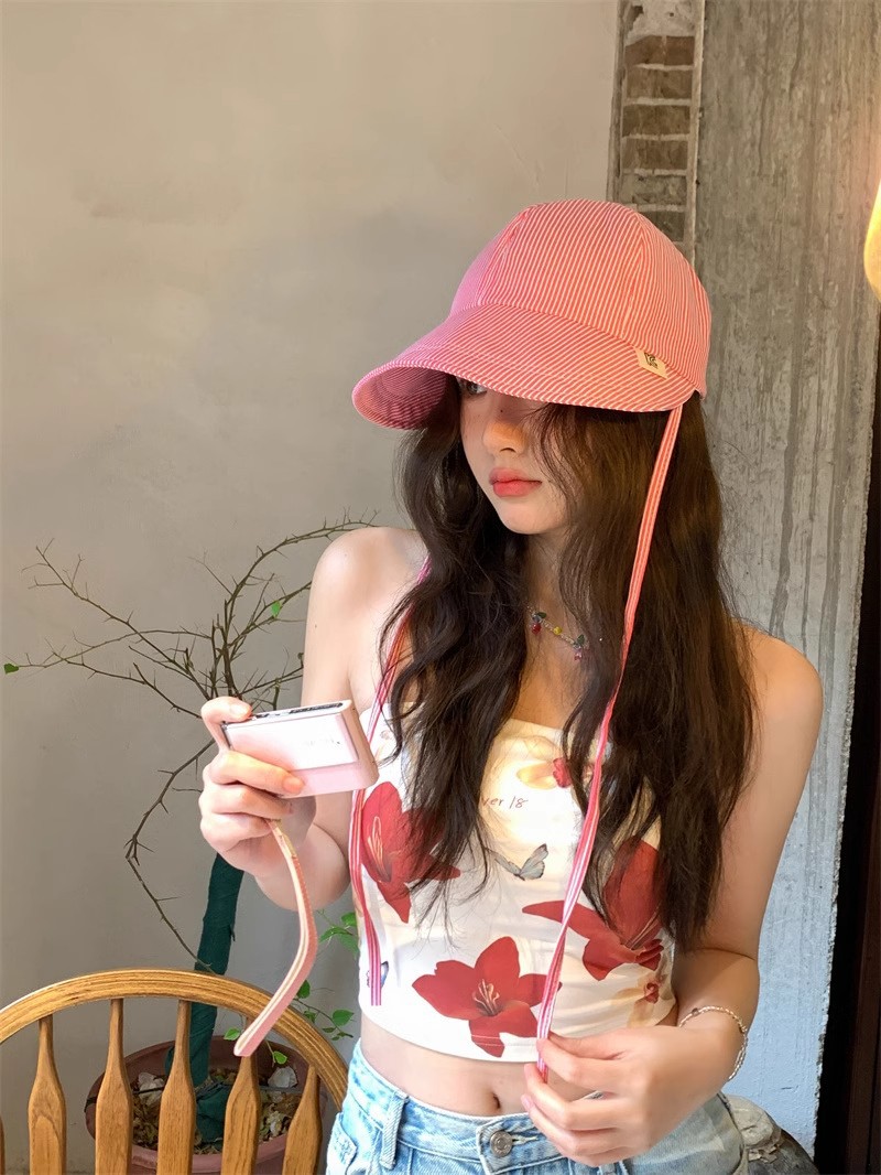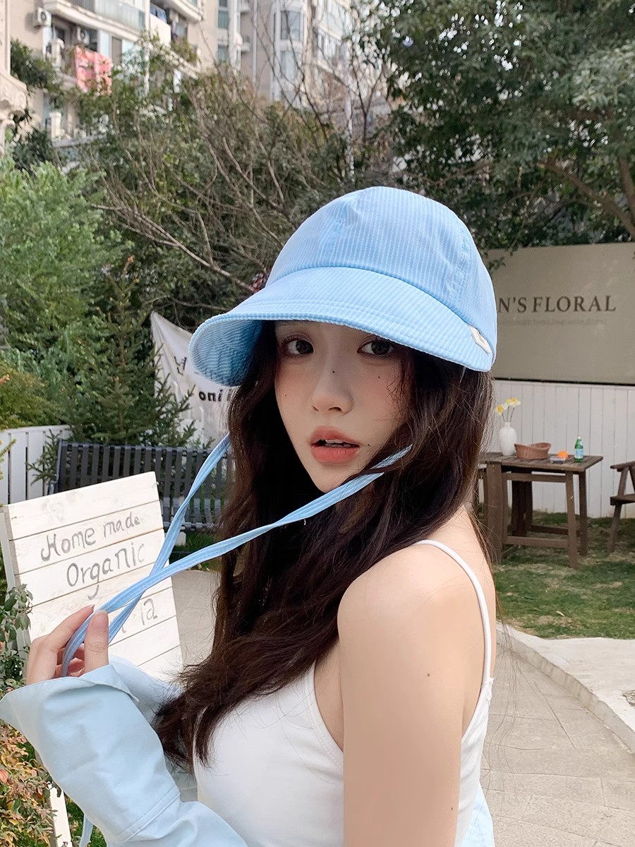 한국 동대문 2025 신상 여름 자외선 차단 모자 여성용 어부 모자 줄무늬 가볍고 얇은 접이식 오리 모자스토어 가기