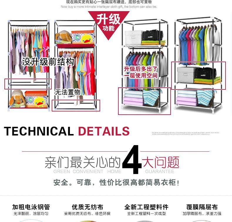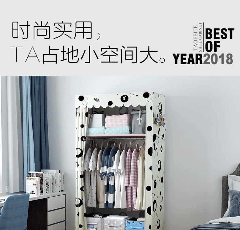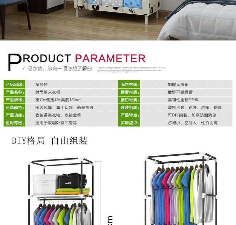 간이옷장 기숙사 임대주택 심플 모던 경제형 조립식 천옷장 수납장 싱글 천옷장