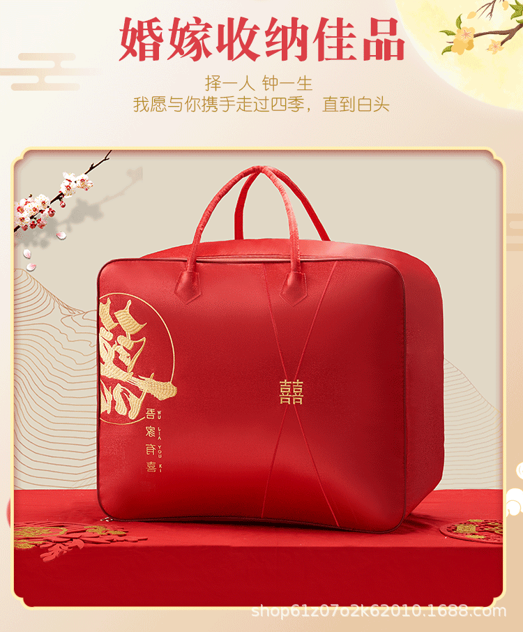 웨딩 이불 포장 가방 웨딩 이불 의류 대형 보관 가방 두꺼운 보관 가방 빨간색 축제 포장 가방스토어 가기