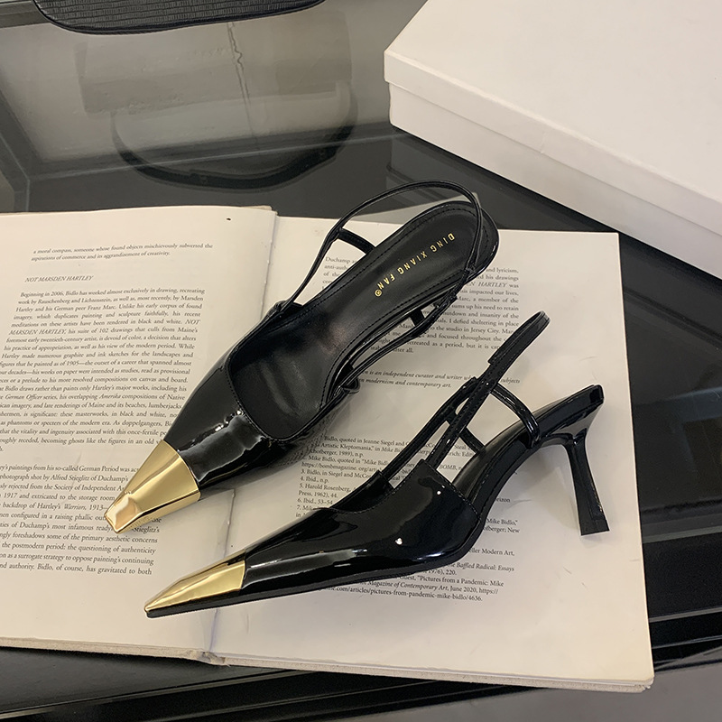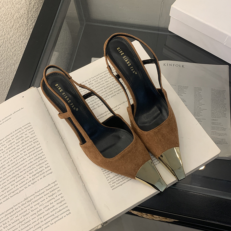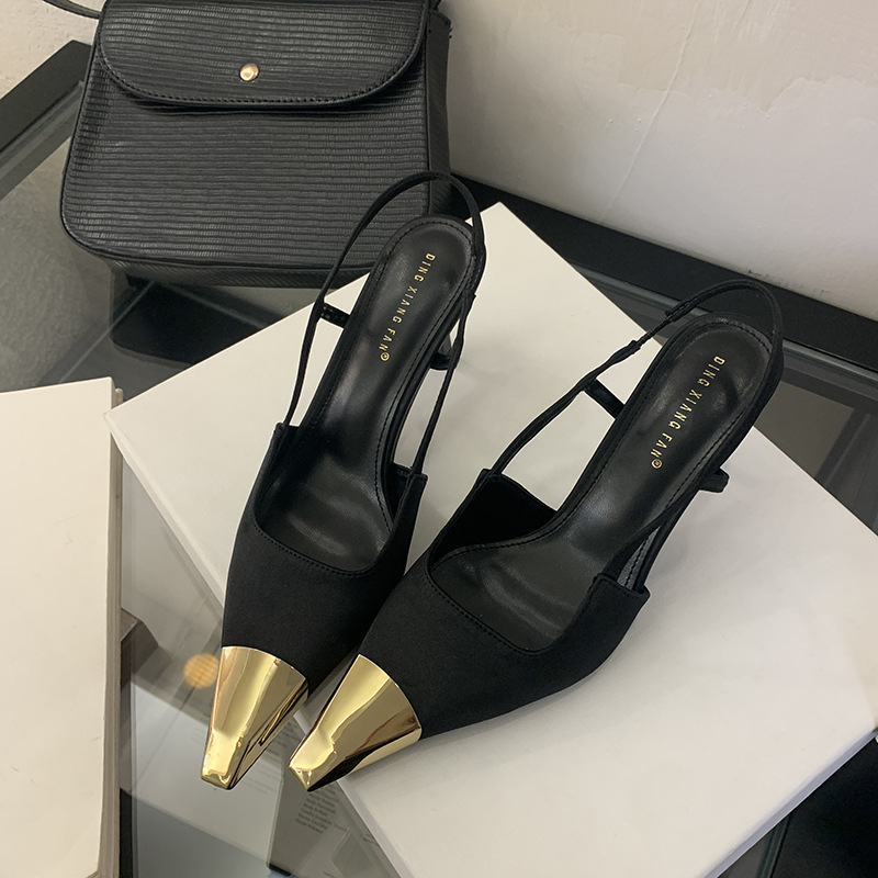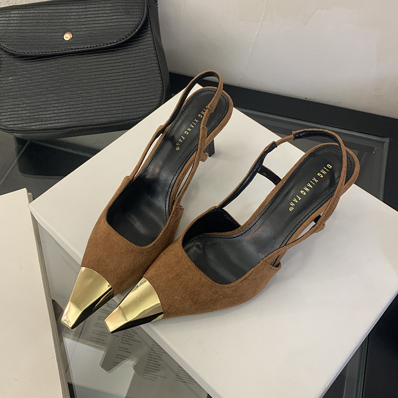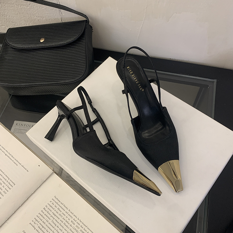 유럽과 미국 스타일의 포인티드 토 백 샌들, 패셔너블한 메탈 토, 여성을 위한 우아한 하이힐스토어 가기