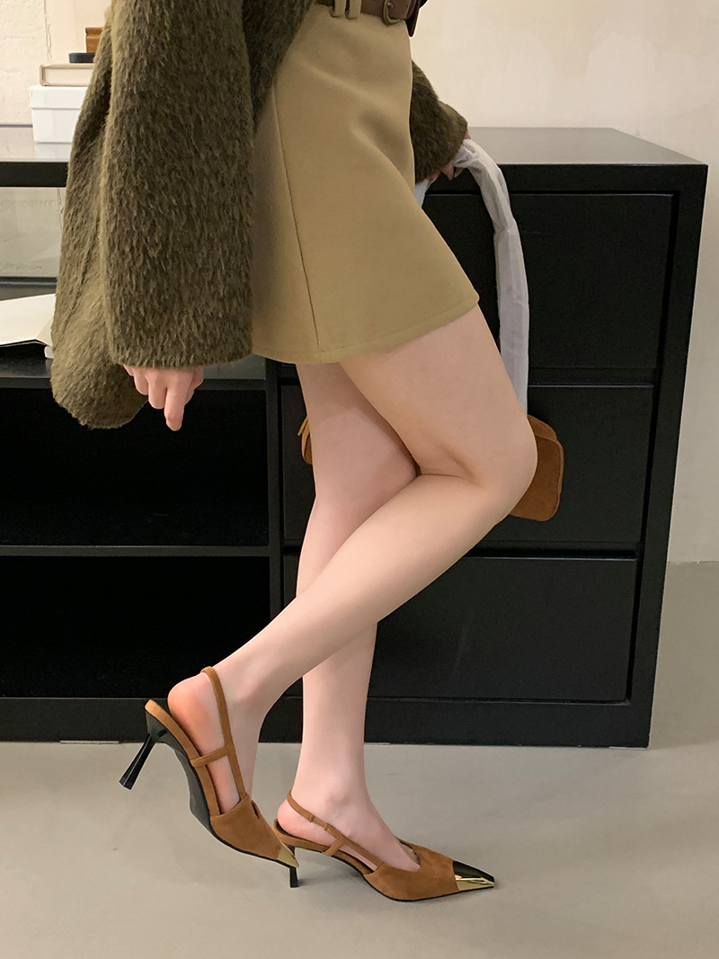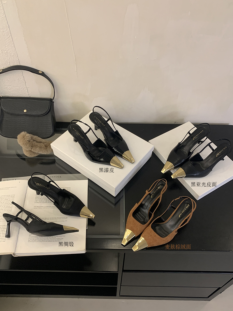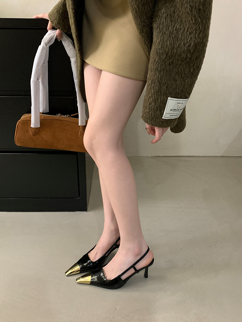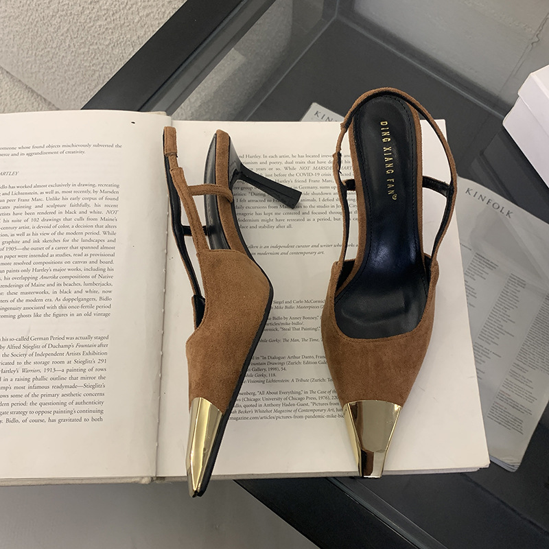 유럽과 미국 스타일의 포인티드 토 백 샌들, 패셔너블한 메탈 토, 여성을 위한 우아한 하이힐스토어 가기