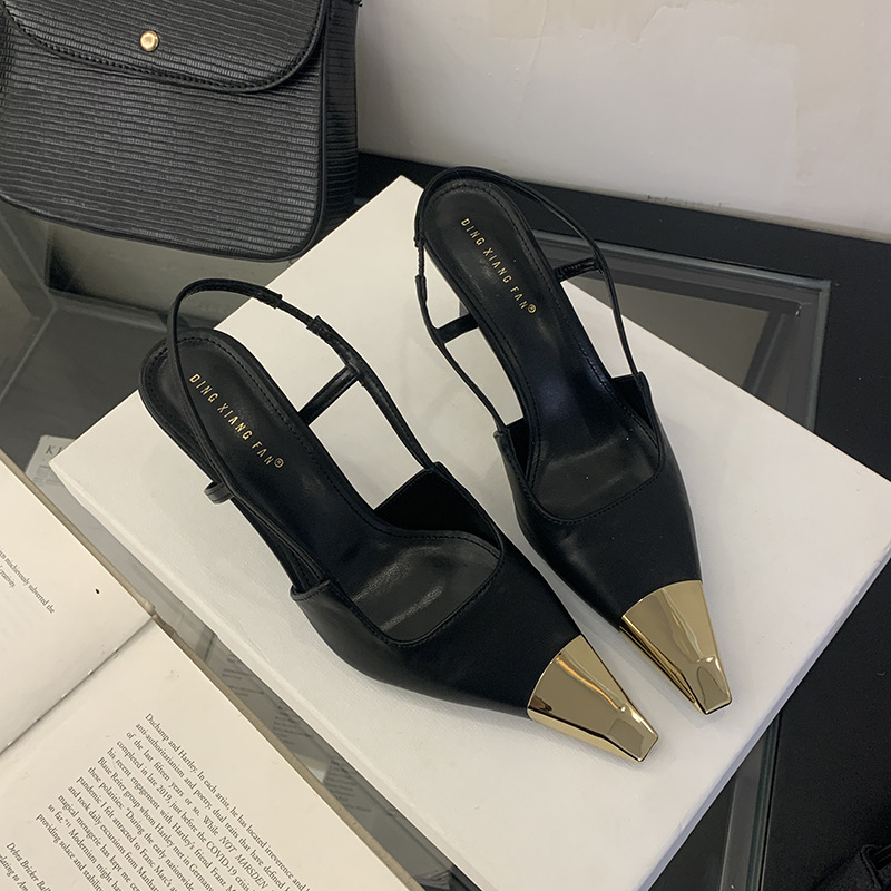 유럽과 미국 스타일의 포인티드 토 백 샌들, 패셔너블한 메탈 토, 여성을 위한 우아한 하이힐