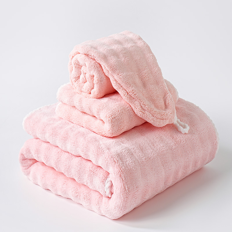 • (로즈핑크) 목욕타월 + 핸드타월 + 헤어드라이타월 [크림버블벨벳A등급항균]