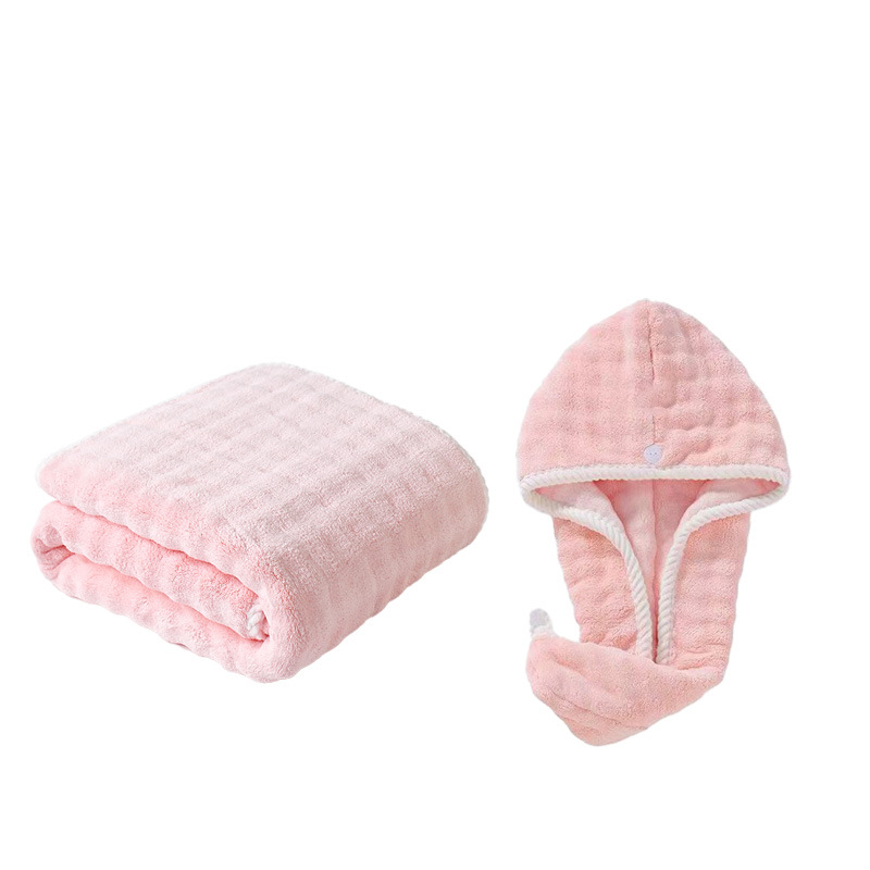 • (로즈핑크) 목욕타월 + 헤어드라이 타월 [크림버블벨벳A등급항균]