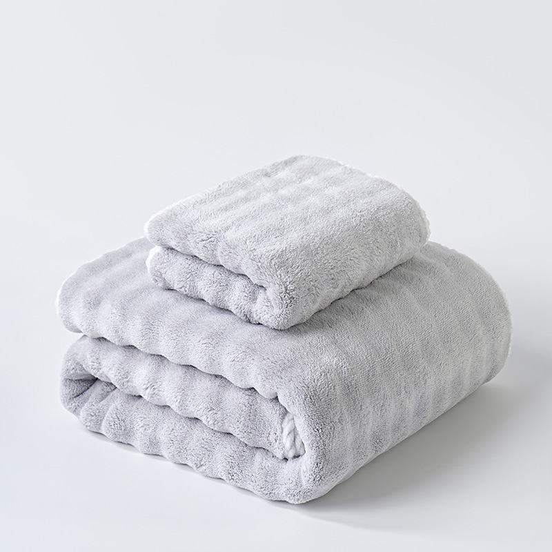 • (루이송 그레이) 목욕타월 + 타월 + 헤어드라이 타월 [크림버블벨벳A등급항균]