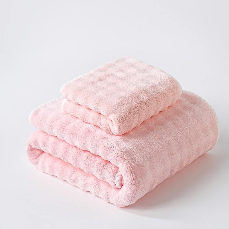• (로즈핑크) 목욕타월+타월 [크림버블벨벳A등급항균]