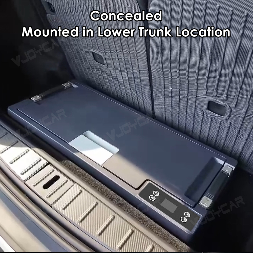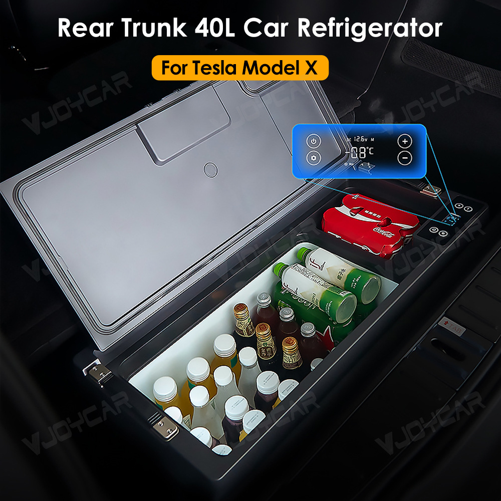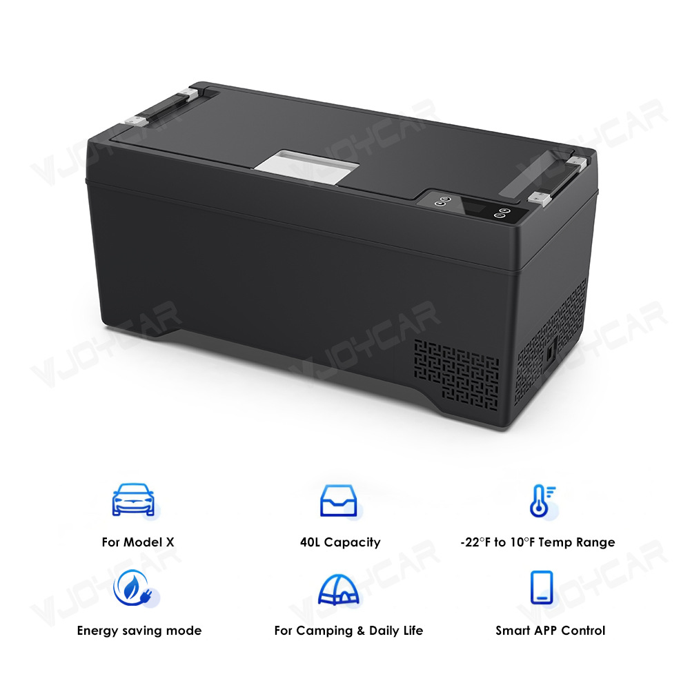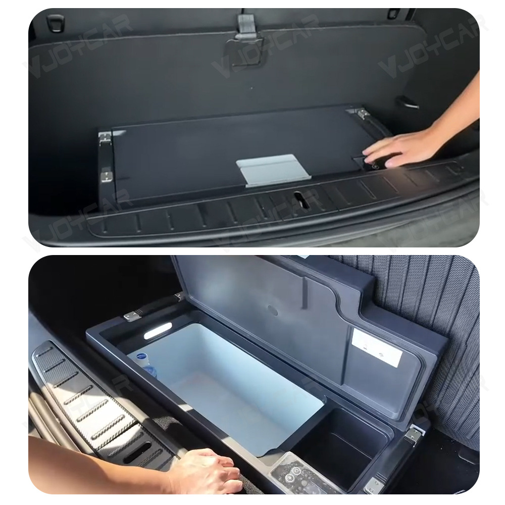①:大容量适配:40 升超大容量,专为特斯拉 Model X 设计,隐藏安装于后备箱下部,不占用前备箱空间,完美适配车辆布局。